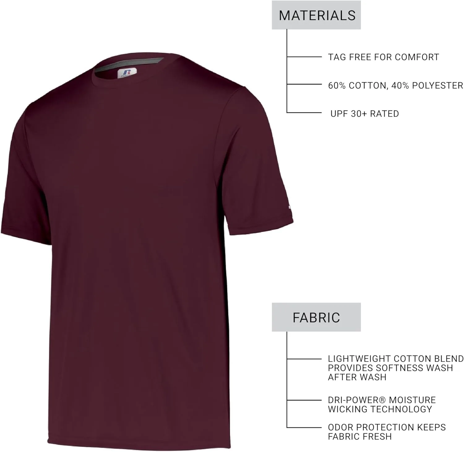 Производительность, функциональность и комфорт — все, что нужно для выведения ваших тренировок на новый уровень. Футболка Russell Athletic Performance изготовлена с использованием технологии отвода влаги Dri-Power, обеспечивает защиту от запахов и сохраняет свежесть ткани, а также имеет рейтинг UPF 30+, защищающий от вредных ультрафиолетовых лучей. Эта легкая футболка идеально подходит для ношения в течение всего дня и выдерживает самые интенсивные нагрузки.