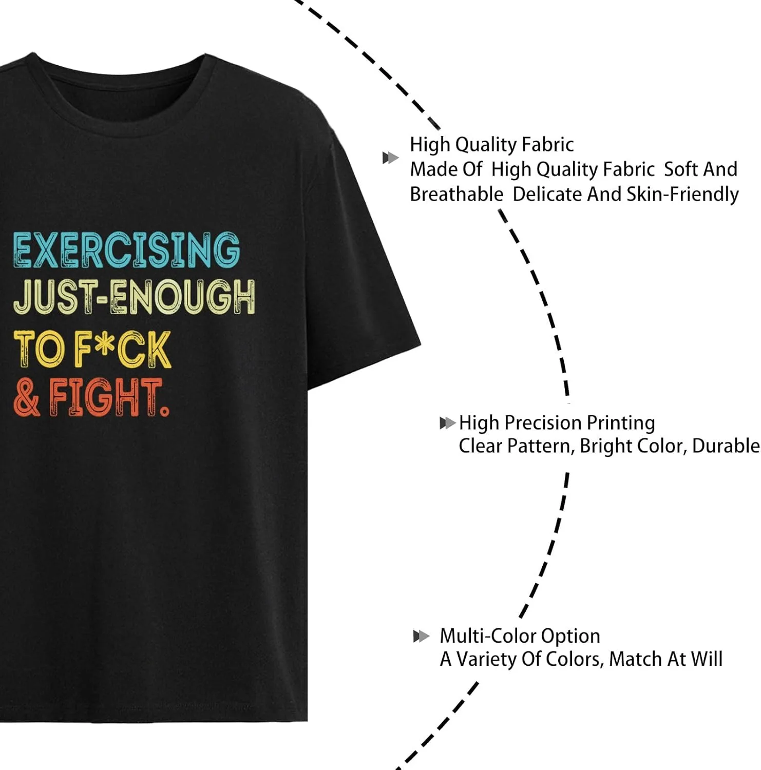 Ручная и машинная стирка. Не замачивать надолго. Не отбеливать. Температура моющего средства не должна превышать 45ºC. Футболки с надписью "Exercising Just-Enough to F*CK & Fight" для мужчин и женщин, супермягкие футболки с коротким рукавом AllBlack. Ткань: мягкая и приятная на ощупь, впитывает пот и пропускает воздух; не дает усадки, не деформируется, не образует катышков. Изысканные узоры: Модные узоры идеально подчеркнут вашу индивидуальность и выделят вас из толпы. Внимательное отношение к деталям: двойные подвернутые манжеты, усиленный круглый вырез горловины, аккуратная прострочка, тонкая вышивка. Идеально подходит для любого случая: эта футболка подходит для повседневной носки, например, для занятий спортом, фитнесом, отдыха, вечеринок, прогулок и дома. Футболка с коротким рукавом и принтом не однообразна, а полна веселья, создавая стильный образ с индивидуальностью и подчеркивая ваш уникальный модный вкус.