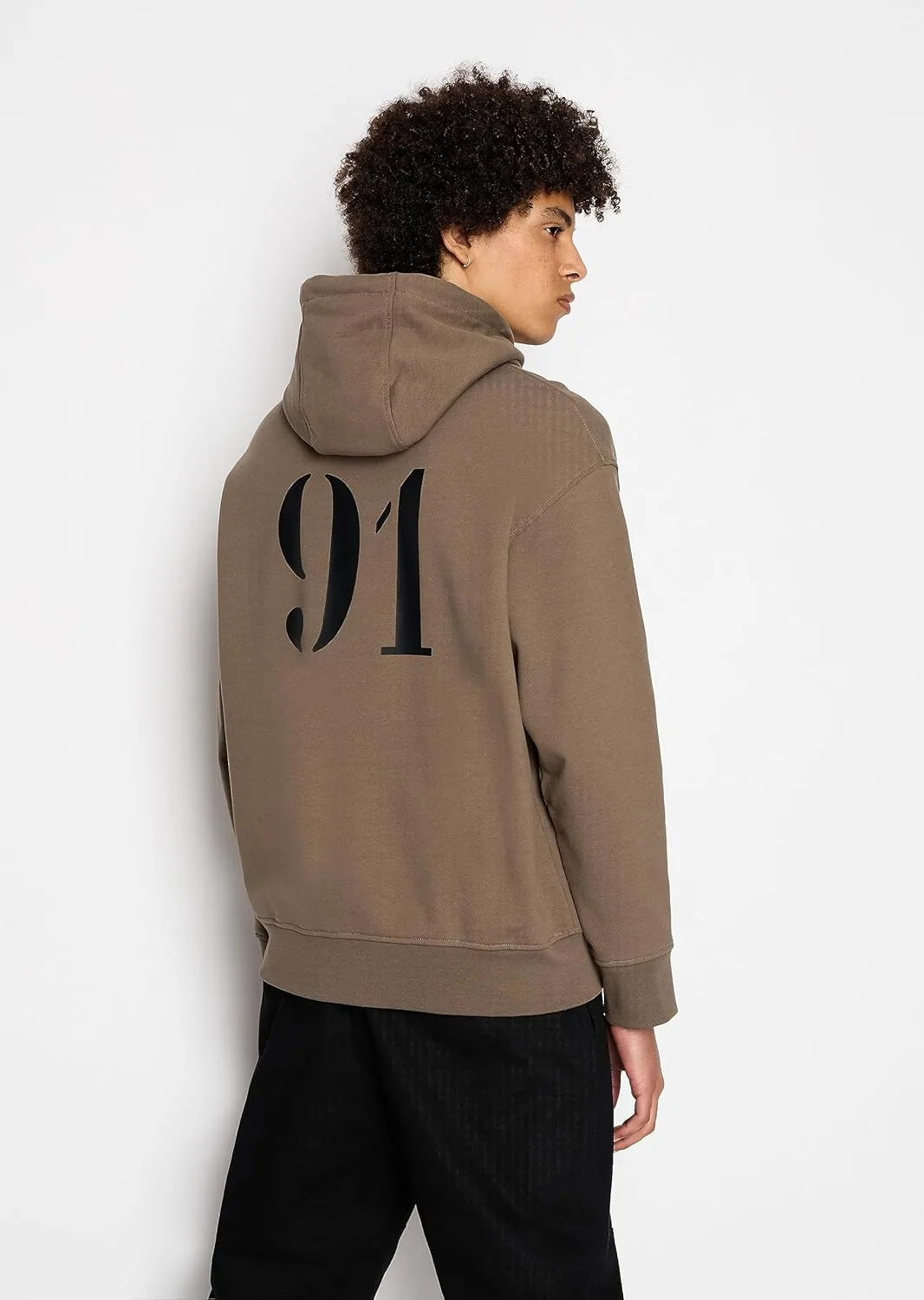 Название модели: Толстовка с капюшоном из хлопковой французской махровой ткани с логотипом и приспущенными плечами.