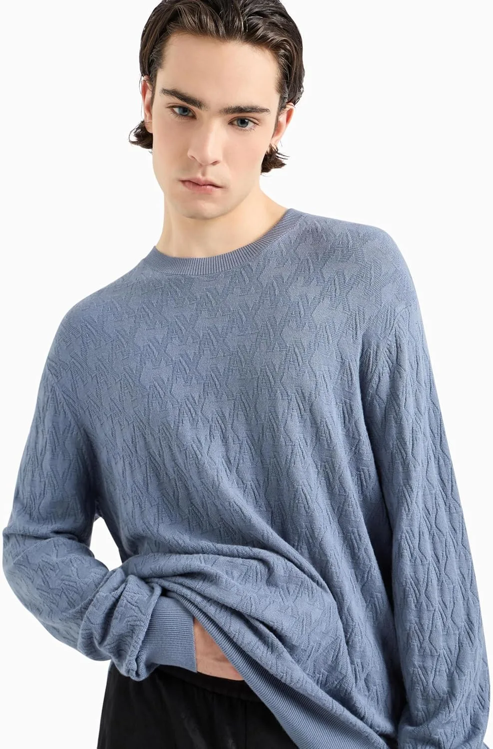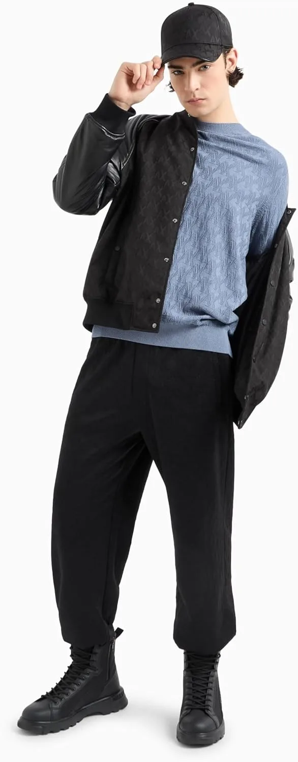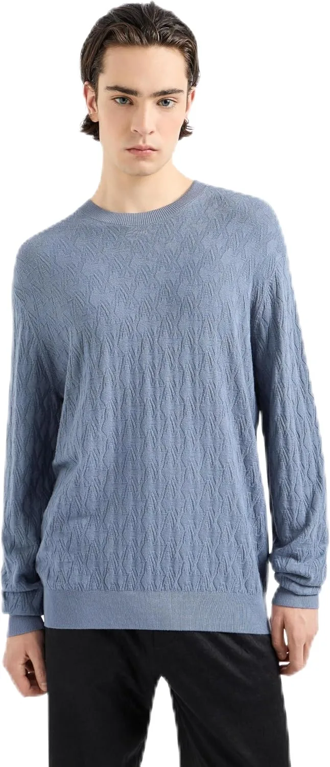 Мужской пуловер A|X Armani Exchange. Уникальный дизайн с тисненым логотипом AX по всей поверхности.