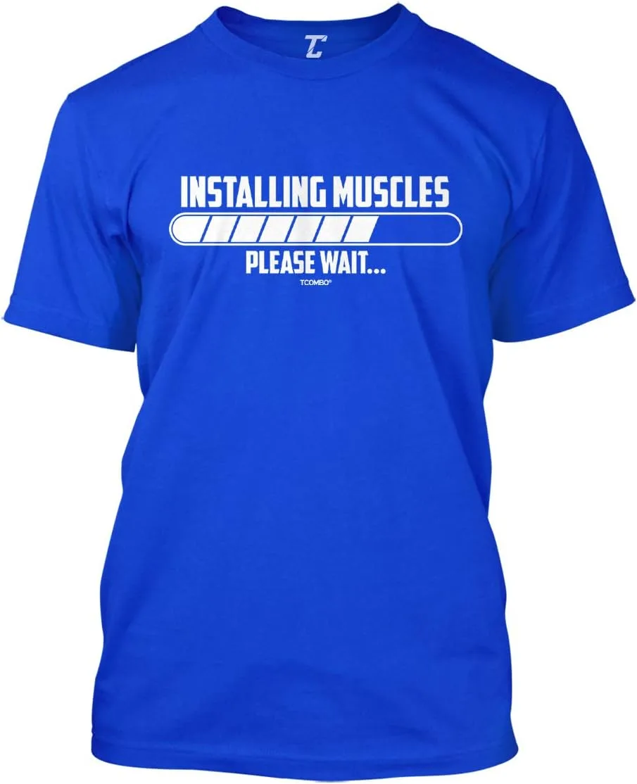 Ищете идеальную футболку для спортзала? Больше искать не нужно! Эта забавная мужская футболка с надписью «Наращивание мышц, пожалуйста, подождите — тренировка в спортзале» — удобный и недорогой способ выразить себя. Покупаете ли вы её для завсегдатая спортзала, любителя фитнеса или бодибилдера, вы обязательно вызовете улыбку на его лице.