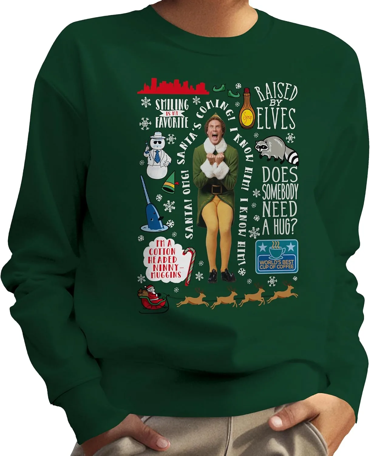 Вспомните радость и смех уникальной рождественской классики с нашей толстовкой с круглым вырезом из фильма «Эльф» для взрослых и детей! Мужчины, женщины, мальчики и девочки могут с удовольствием носить эту удобную толстовку с круглым вырезом, украшенную высококачественным принтом с изображением всеми любимого Уилла Феррелла в роли Бадди Эльфа из классического фильма «Эльф».