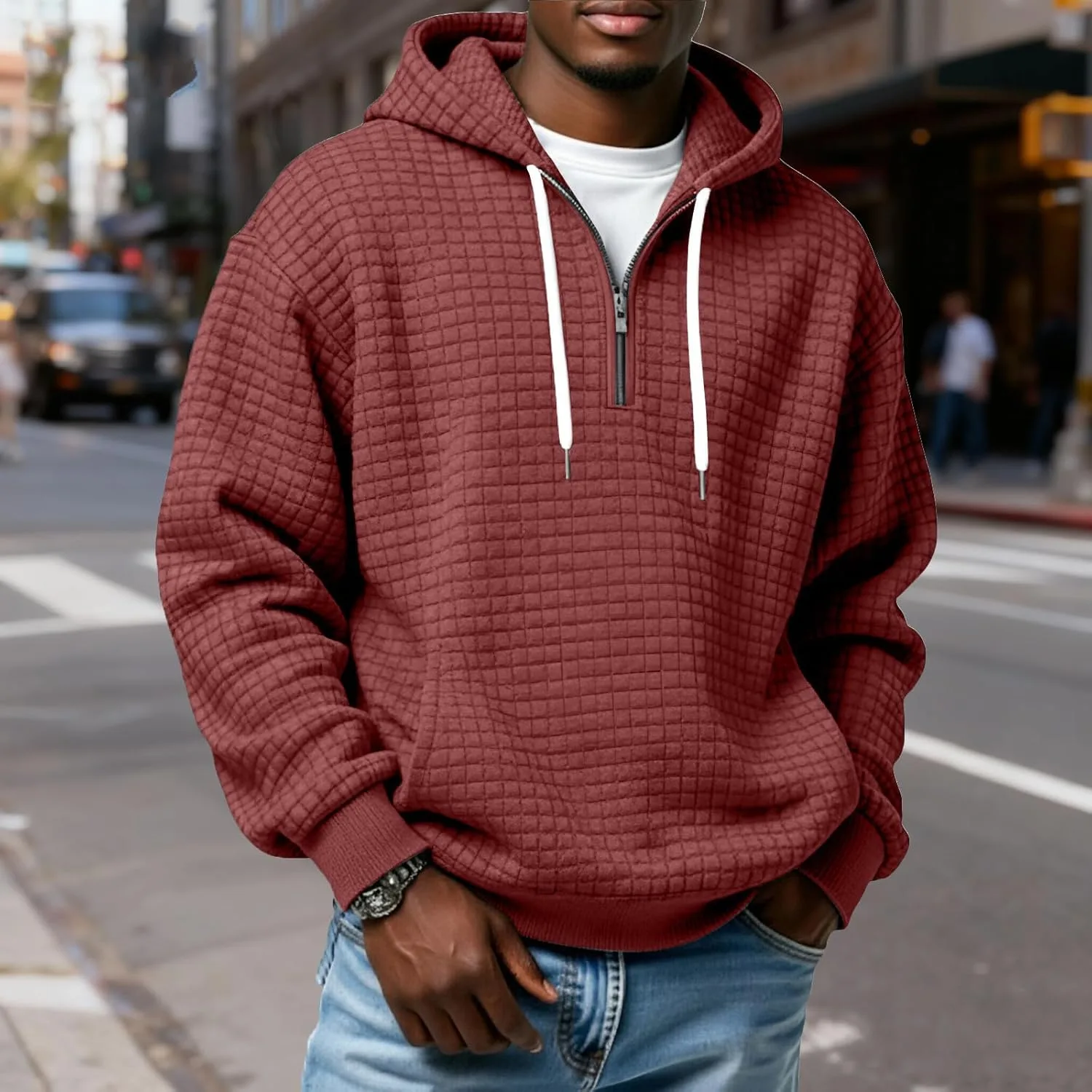 Толстовка с капюшоном Quarter Zip Pullover Men Waffle Oversized