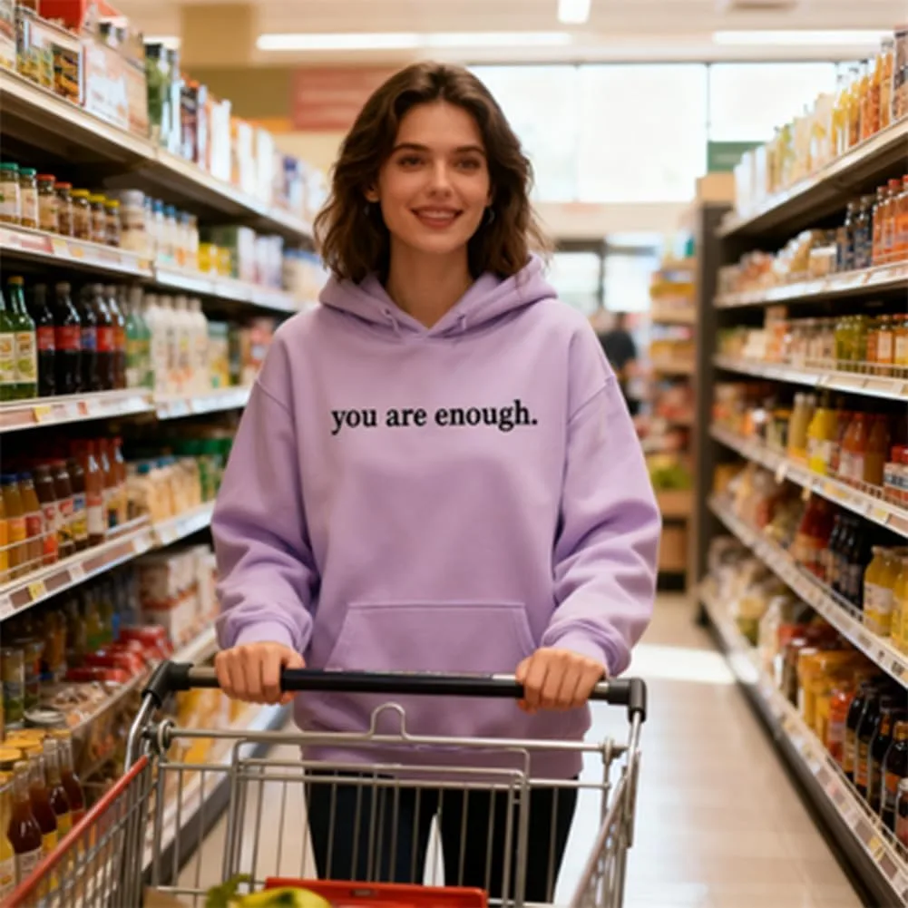 【Вдохновляющий дизайн】Эта толстовка унисекс с вдохновляющим посланием «Ты достаточно хороша» дарит тепло — не только в плане комфорта, но и в эмоциональном плане. Сдержанная, но значимая, она добавляет смысла вашему образу, выражая позитив, поддержку и любовь.