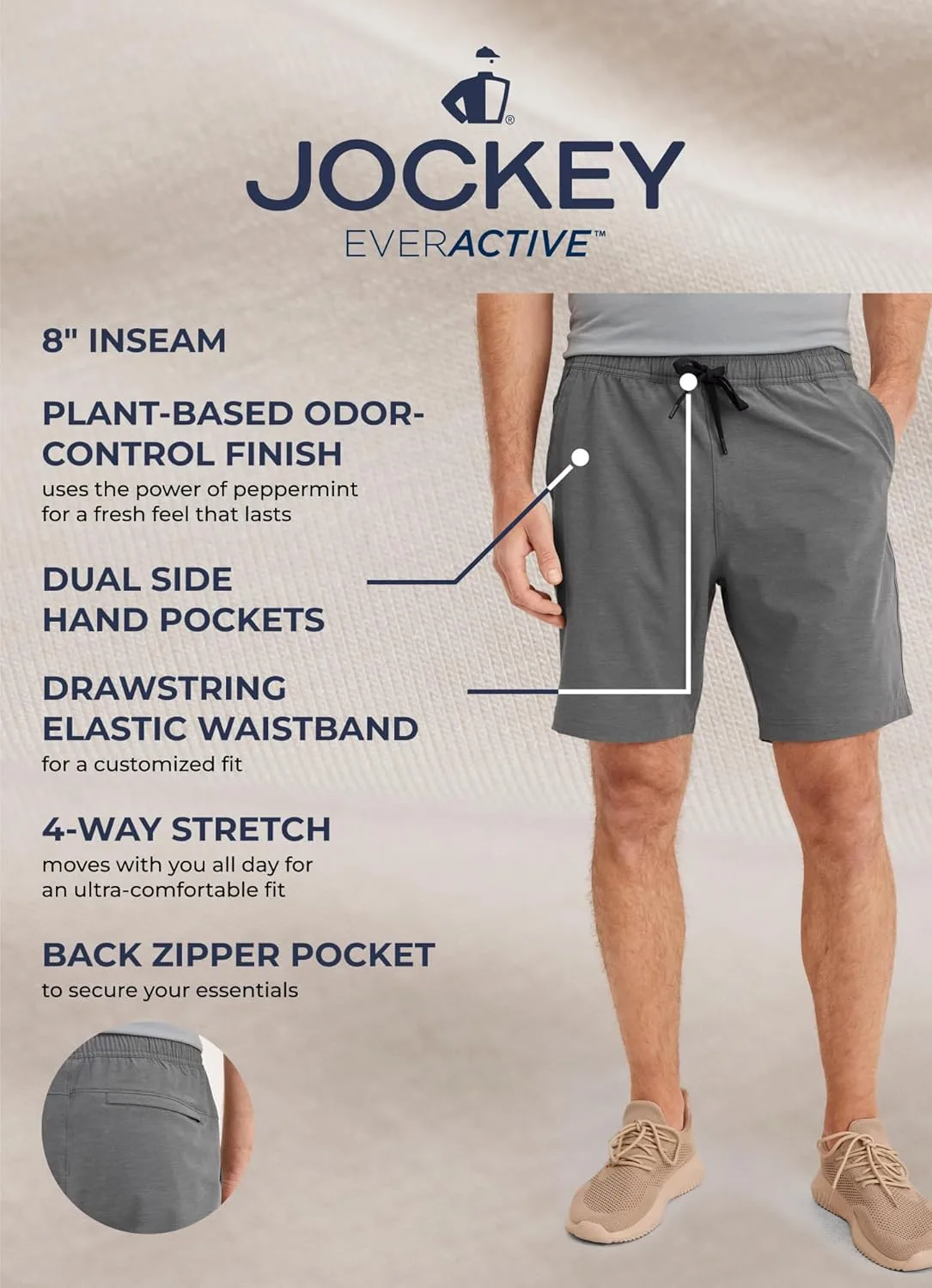 Стиль 3663 Полуприлегающий Длина внутреннего шва 8 дюймов Невероятно мягкая эксклюзивная ткань Jockey обработана ворсом для придания ей исключительной мягкости. Эластичная ткань, растягивающаяся в четырех направлениях, обеспечивает свободу движений в течение всего дня, гарантируя максимальный комфорт. Покрытие на растительной основе, контролирующее запахи, использует силу перечной мяты для создания ощущения свежести, которое сохраняется надолго.