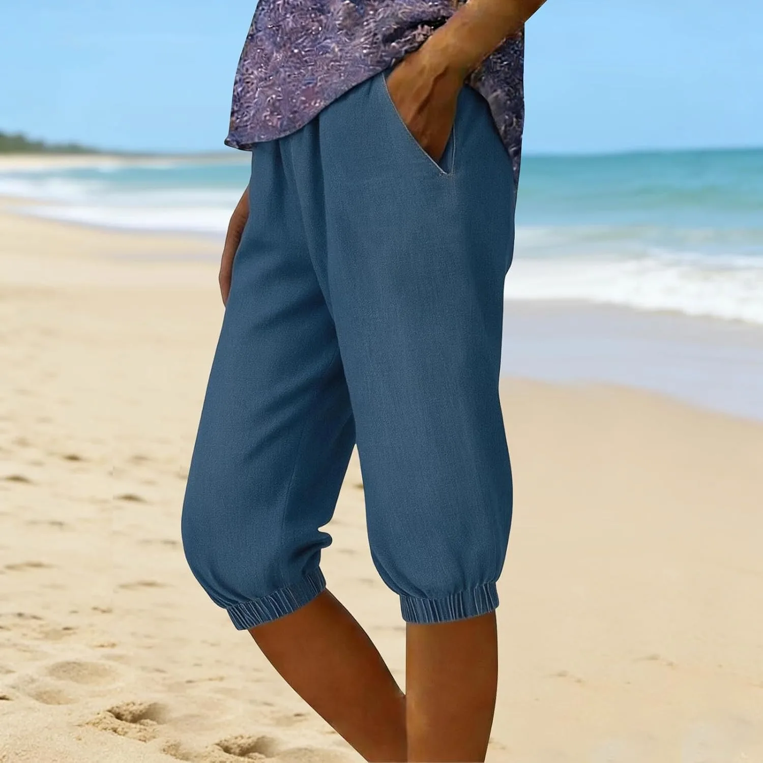 Универсальная длина капри: благодаря удачной длине капри она подходит для разных типов фигуры. В повседневной жизни их можно носить с рубашкой и кроссовками, а для более торжественных случаев — с блузкой и туфлями на каблуках.