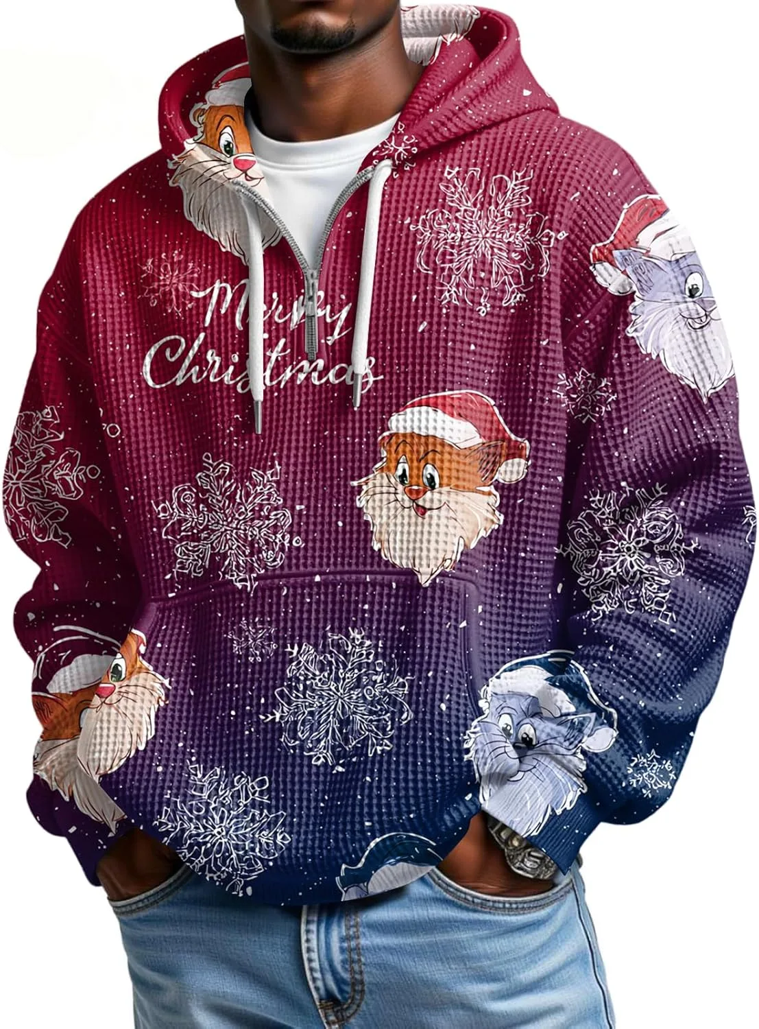 Практичный и праздничный дизайн: удобный передний карман освободит ваши руки, а яркие рождественские рисунки подчеркнут ваш праздничный дух. Регулируемый капюшон на шнурке добавит стиля и функциональности в непредсказуемую зимнюю погоду.