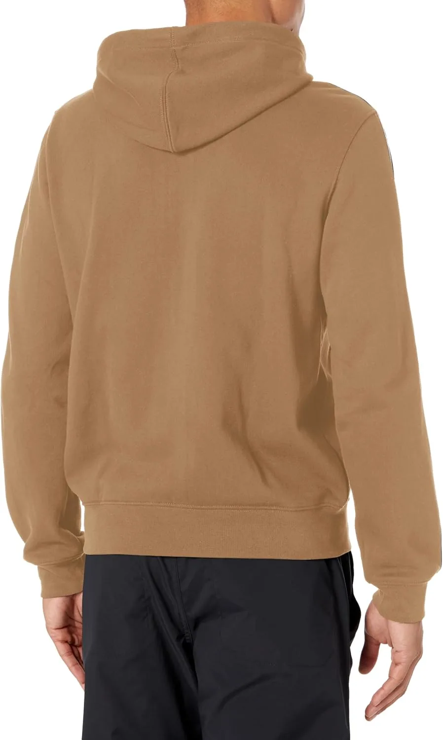 Размер: Маленький или Средний — подходит для разных типов телосложения: apparel_size.body_type — обычный, apparel_size.height_type — обычный. Состав ткани: 80% хлопок, 20% полиэстер — сочетает в себе комфорт и долговечность. Застежка: молния - легко надевать и снимать. Стиль: Классический крой с фирменными полосками — вневременной дизайн с элементами брендинга. Цвет: Коричневый — нейтральный цвет, который подходит ко многим нарядам. Капюшон: с капюшоном на шее — обеспечивает дополнительную защиту и тепло.