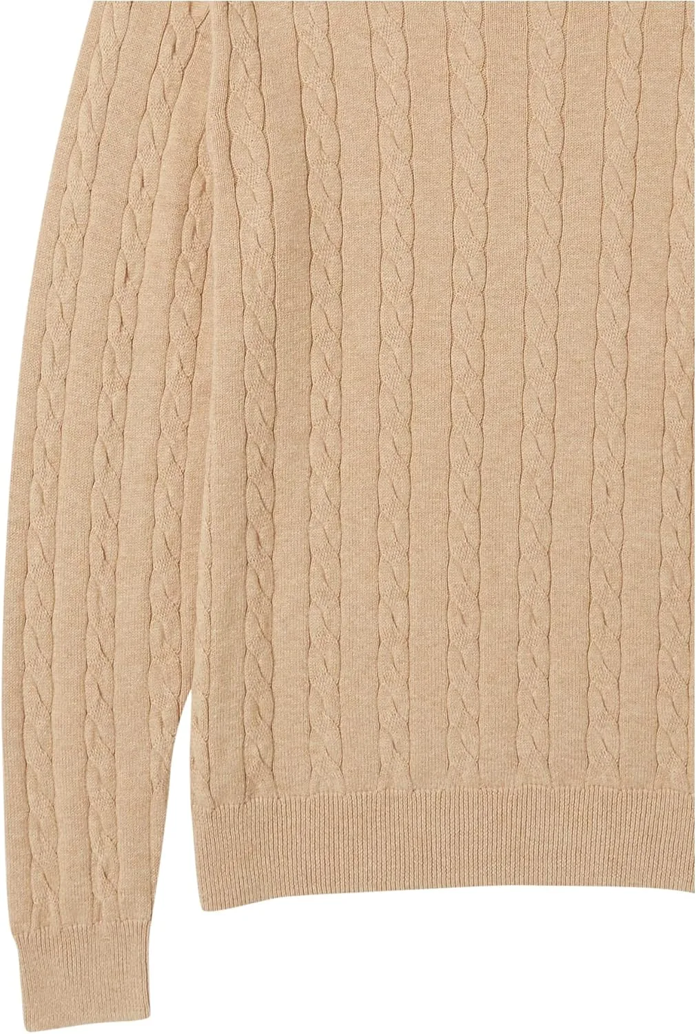 ОБЫЧНЫЙ КРОЙ: Удобная, свободная посадка в области плеч, груди и талии. ХЛОПКОВАЯ ПРЯЖА: Изготовлено из 100% хлопковой пряжи, мягкой на ощупь и обладающей естественной эластичностью. Повседневный свитер: Этот пуловер с круглым вырезом — идеальный вариант для многослойных образов. Он достаточно легкий, чтобы носить его поверх другой одежды, и достаточно мягкий, чтобы носить его отдельно. Классический узор «косичка». ДЕТАЛИ: Ребристая отделка по линии горловины, манжетам рукавов и нижнему краю. Длина: 27 1/2 дюйма от боковой части шеи для американского размера M.