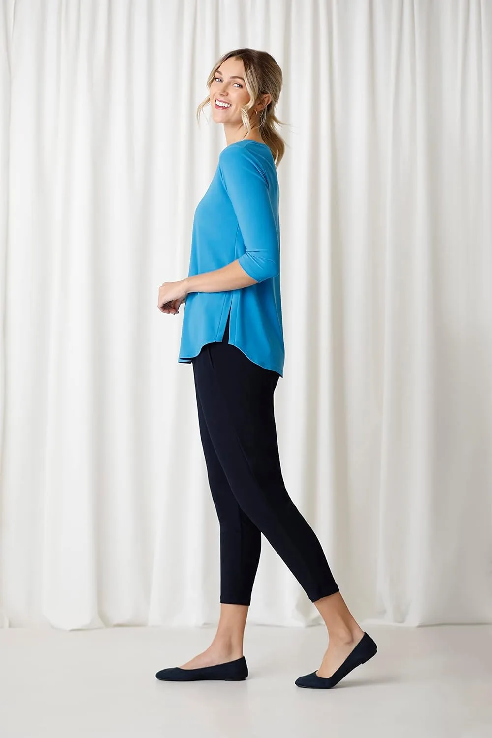 Футболка Sympli Go To Classic T Relax с рукавами 3/4, модель 22110R-2, – это роскошная вещь из струящейся ткани, которая обеспечивает красивое развевание. Она имеет округлый вырез горловины и едва заметные боковые разрезы, создающие прекрасный силуэт, а также рукава 3/4. Это просто идеальная футболка! Представляем линию одежды, которая дарит позитивные эмоции и уверенность в себе. SYMPLI помогает женщинам, упрощая и украшая жизнь, предлагая одежду для всех типов фигуры, в которой они чувствуют себя комфортно, уверенно и потрясающе! Разработано женщинами для женщин, с учетом особенностей каждой фигуры. С гордостью произведено на 100% в Канаде. 94% полиэстер, 6% спандекс | Машинная стирка в холодной воде / В горизонтальном положении