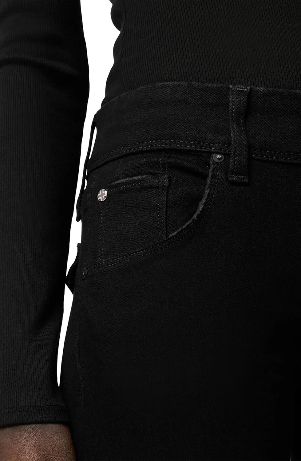Наши джинсы Beth Mid-Rise Baby Bootcut Petite черного цвета имеют слегка расклешенный силуэт и фирменные задние карманы с клапанами на пуговицах.