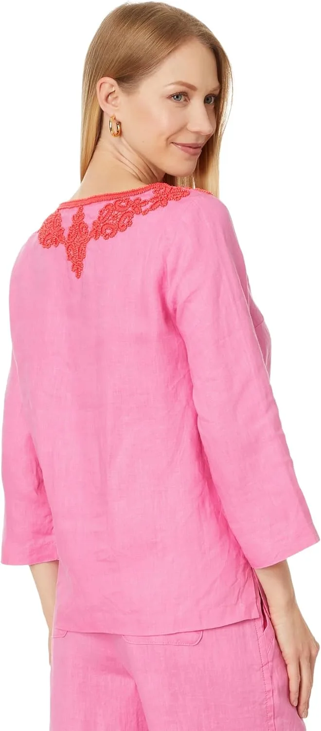 Lilly Pulitzer Women's Elyn Beaded 3/4 Sleeve Linen Top