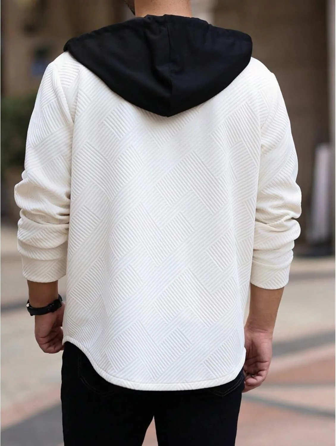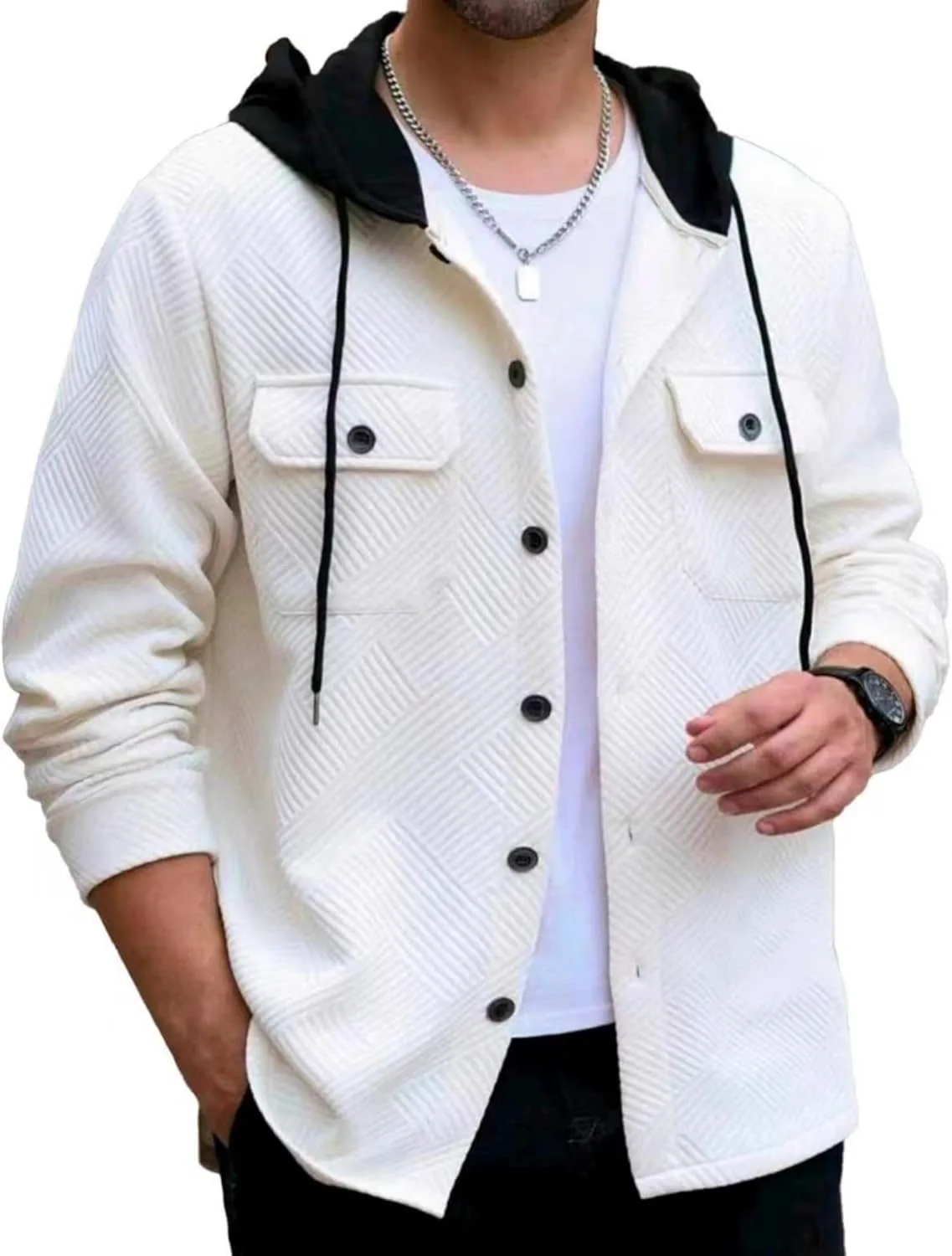 ОСОБЕННОСТИ ДИЗАЙНА: Стильная куртка на пуговицах с контрастным черным капюшоном и фактурным корпусом цвета хаки, выполненная из ткани с современным геометрическим узором. РАЗМЕРНЫЙ РЯД: Доступны различные размеры от S до 2XL, обеспечивающие удобную посадку для разных типов телосложения. УНИВЕРСАЛЬНЫЙ СТИЛЬ: Идеально подходит для повседневной носки, классический силуэт рубашки-пиджака с застежкой на пуговицы и удобными передними карманами. ВЕС И МАТЕРИАЛ: Прочная конструкция весом от 380 до 460 г, изготовлена из износостойкой текстурированной ткани, обеспечивающей долговечность. ВАРИАНТЫ ЦВЕТА: Доступны различные цветовые вариации, включая хаки, темно-синий, белый и черный, что позволяет создавать разнообразные сочетания с одеждой.