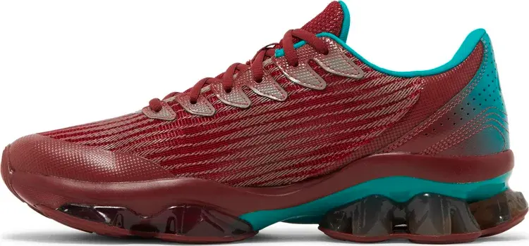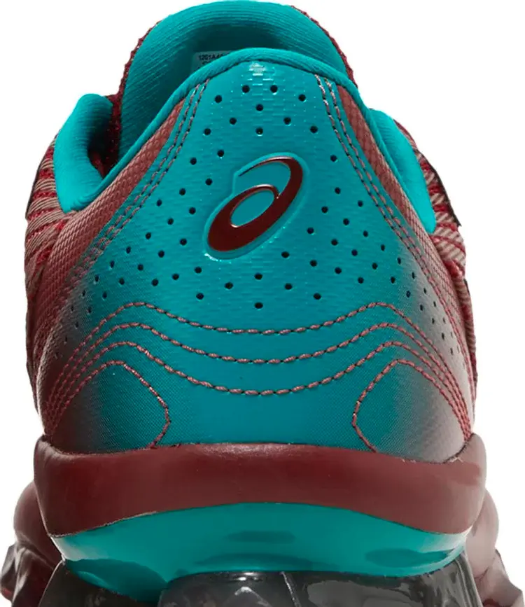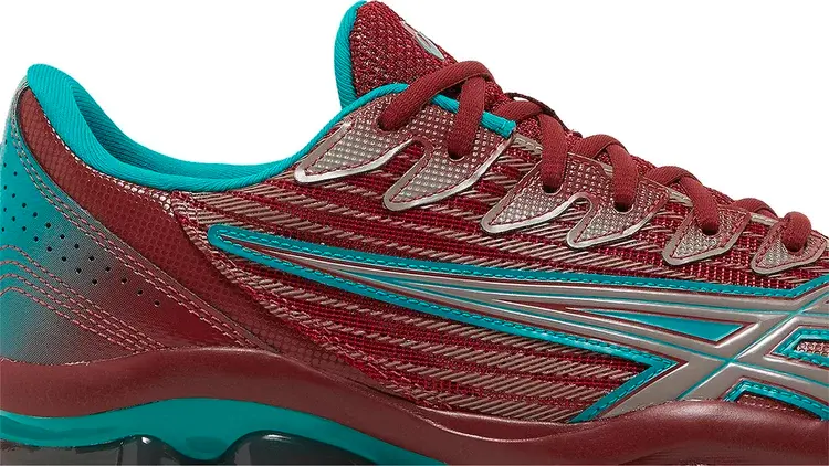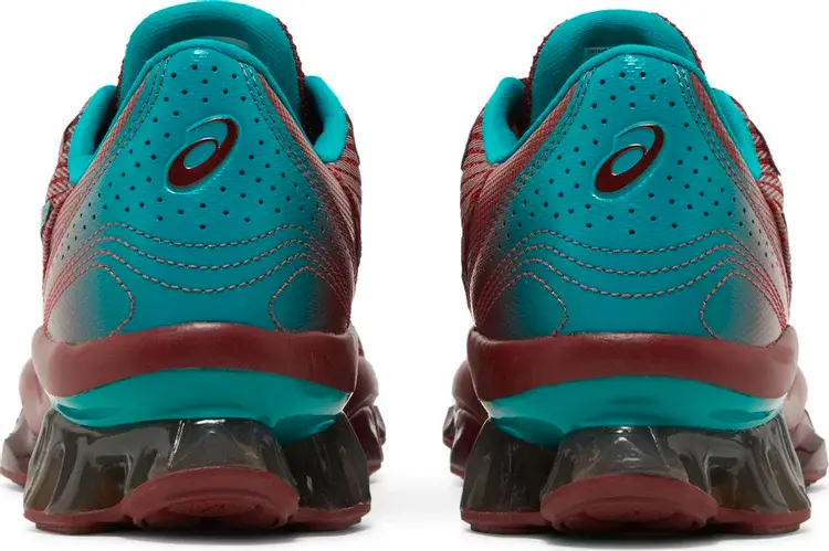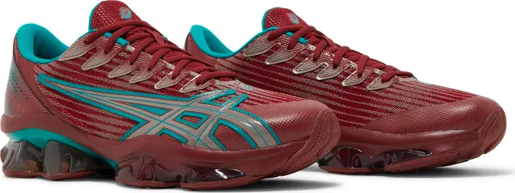 Kiko Kostadinov x ASICS Gel Quantum Levitrack «Fired Brick» представляет новый силуэт, созданный в сотрудничестве с лондонским дизайнером мужской одежды. Аэродинамический верх изготовлен из сетки бордового цвета с формованными тигровыми полосами, обведенными ярко-бирюзовым цветом на боковой стороне. Абсолютно новая промежуточная подошва сочетает в себе элементы FlyteFoam Blast с гелевыми элементами инновационной скутовидной формы, разработанной в Институте спортивных наук ASICS в Японии для улучшения амортизации и естественного шага.