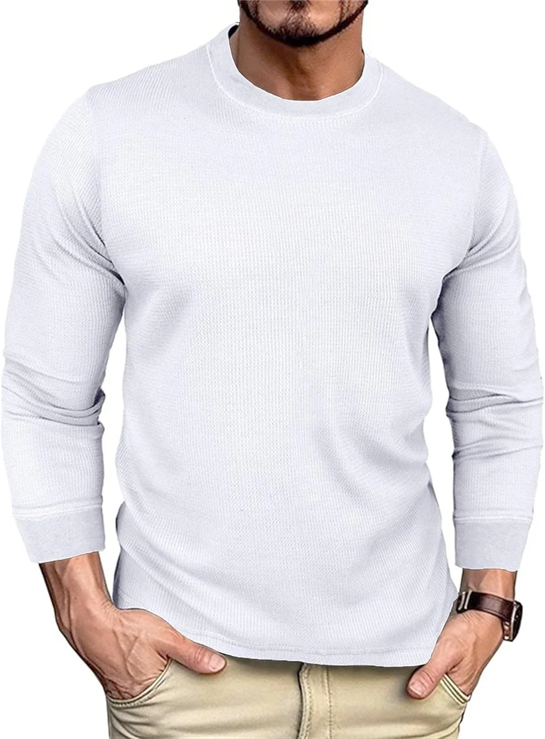 Мужской свитер-пуловер с длинным рукавом, waffle