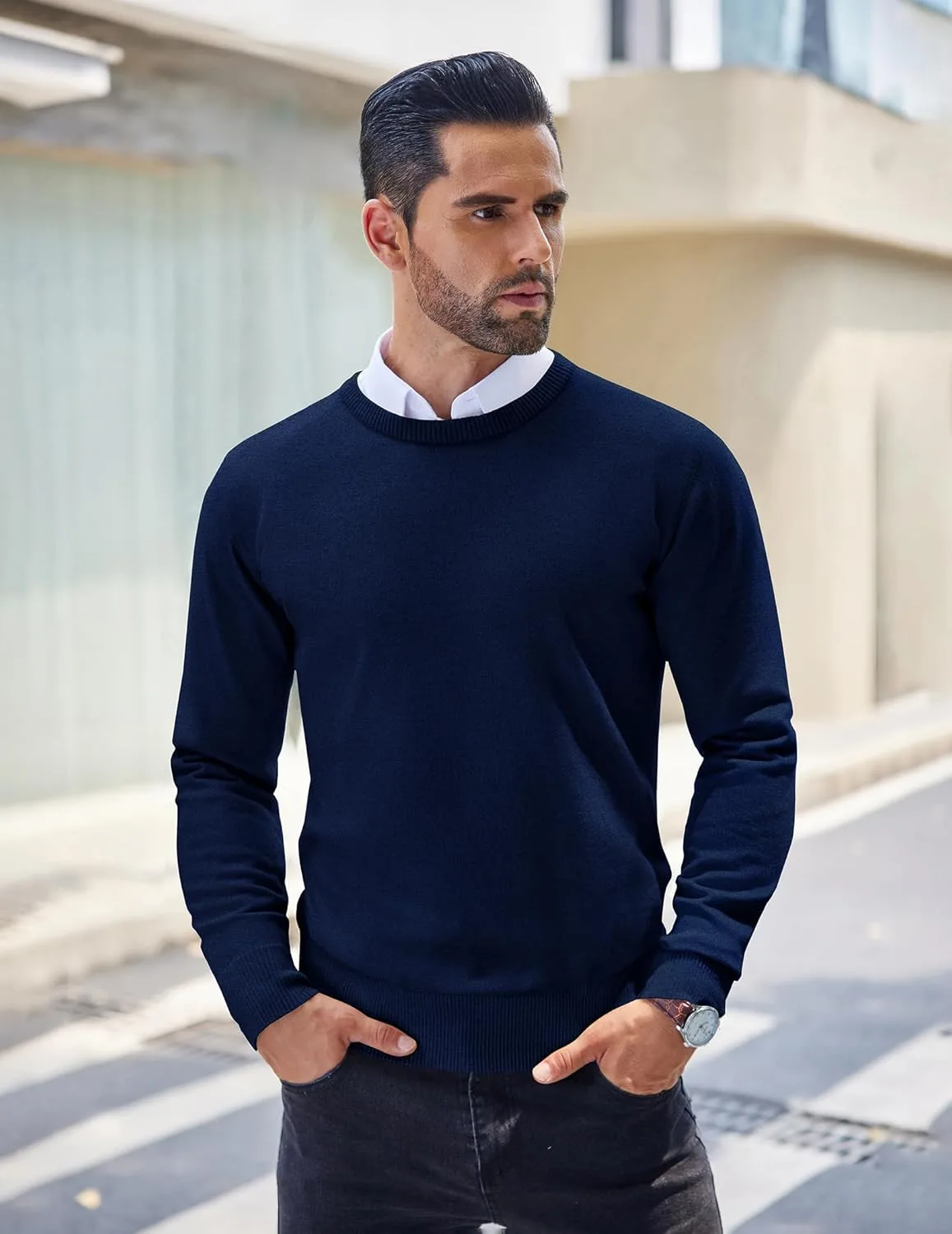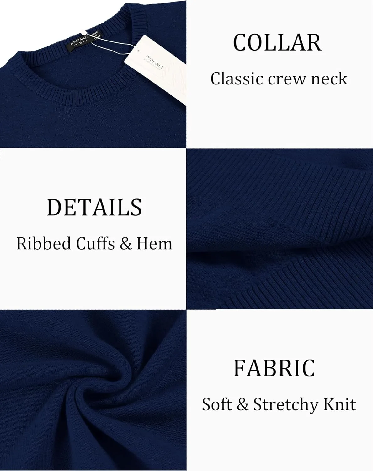 Мягкая трикотажная ткань: Мужской свитер с круглым вырезом изготовлен из высококачественной трикотажной ткани, легкой, дышащей и эластичной, обеспечивая комфорт в течение всего дня. Это лучший выбор для мужского гардероба в любое время года.