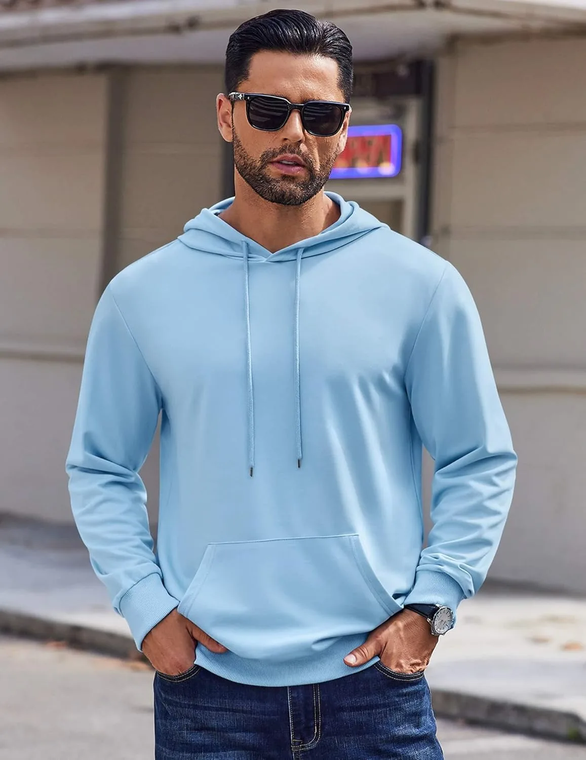 Идеальный крой: Исключительные ткани и безупречный покрой — важные детали этой легкой толстовки. Классический дизайн, включающий капюшон, шнурок, карман-кенгуру, длинные рукава и однотонную расцветку, обеспечит вам модный образ.