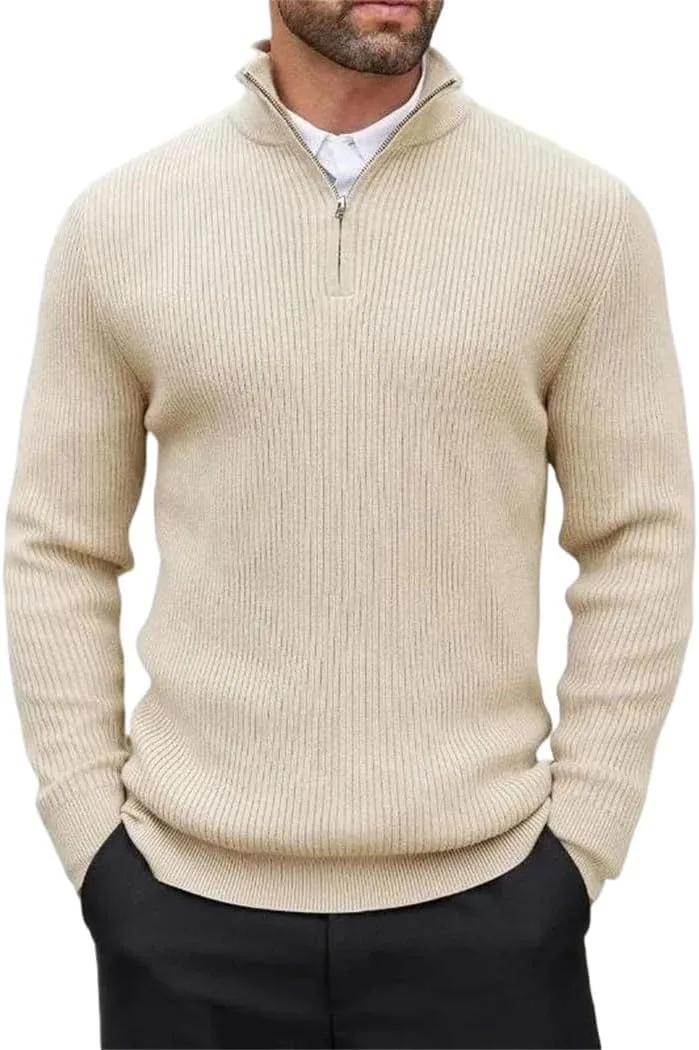 Сочетание: Этот мужской свитер с застежкой-молнией на четверть длины можно носить как самостоятельную верхнюю одежду в сочетании с джинсами для стильного образа, или же сочетать с повседневными брюками и пальто для простого повседневного наряда. Универсальный элемент гардероба, подходящий для разных случаев.