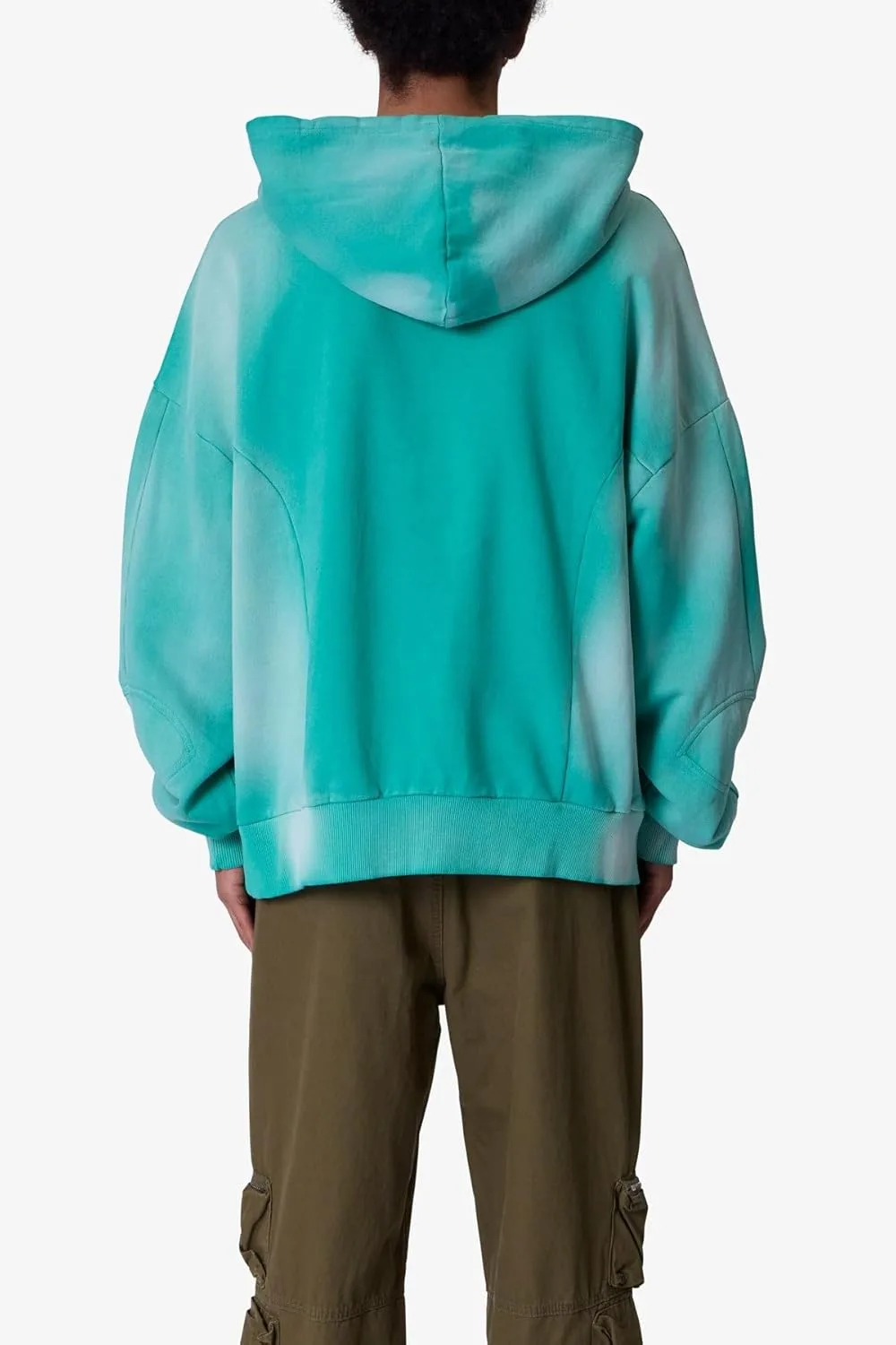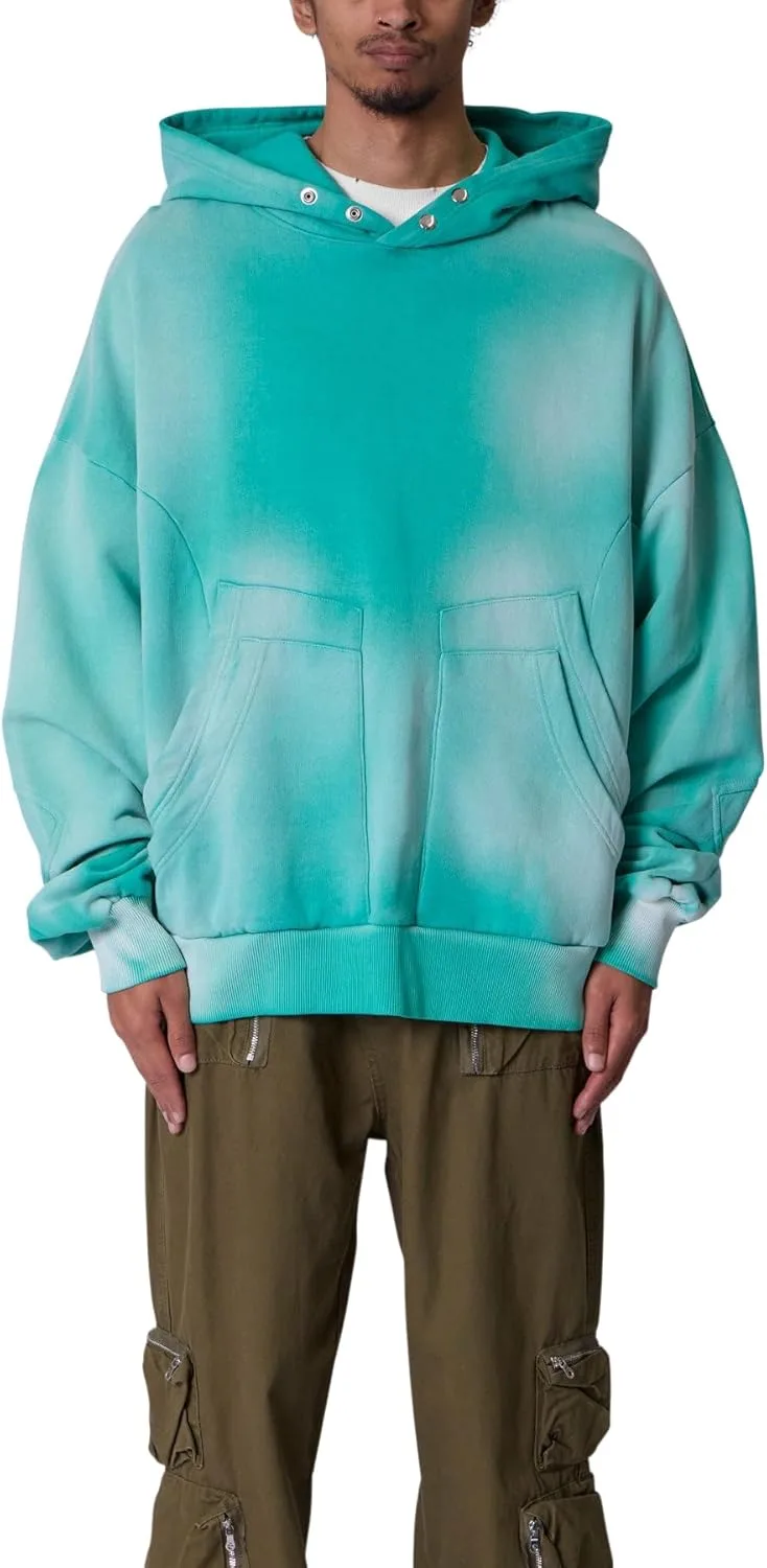 Худи Double Pouch Sprayed Hoodie имеет свободный крой, приспущенные плечи, два передних накладных кармана, ребристую отделку на манжетах и ​​талии, а также выполнено из ткани с эффектом спрей-декора и ворса.