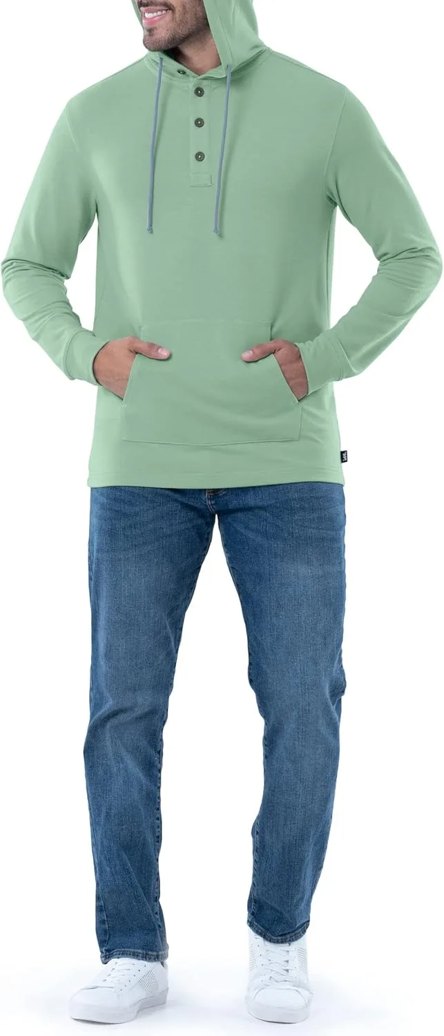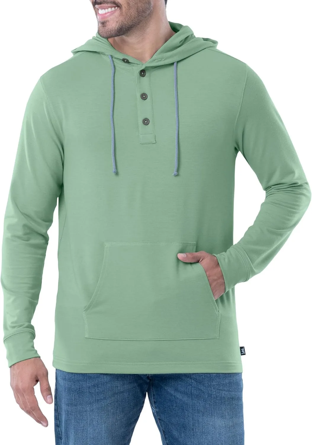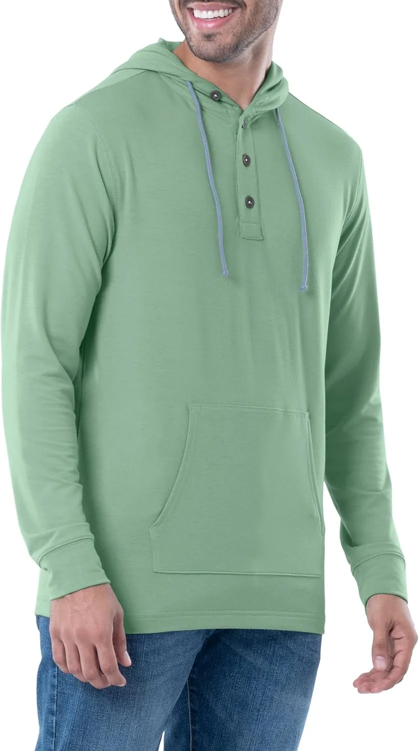 Классическая толстовка с капюшоном и шнурками для регулировки размера — не слишком обтягивающая и не слишком свободная.
