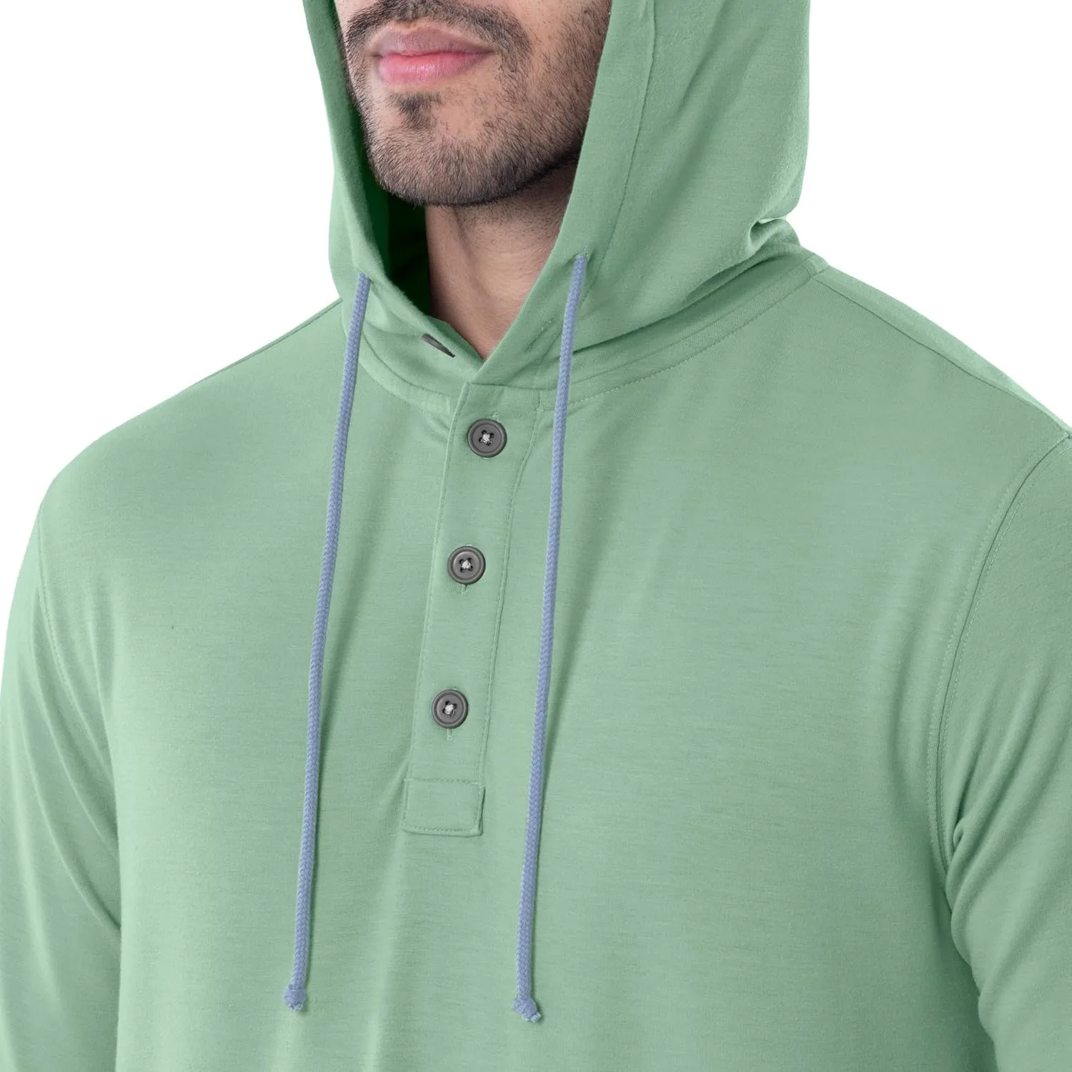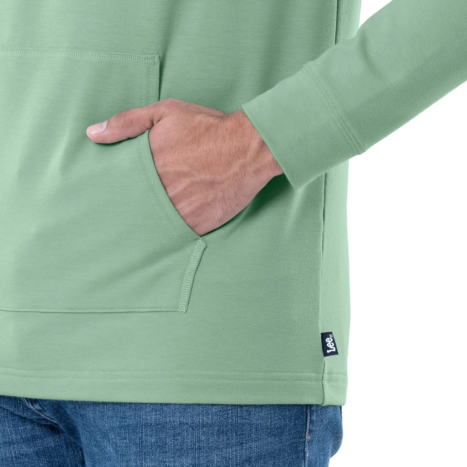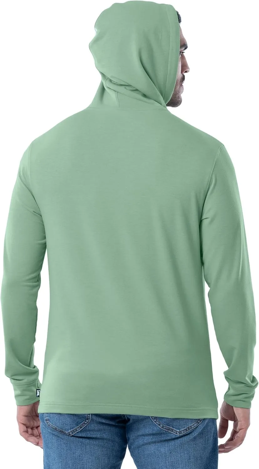 Классическая толстовка с капюшоном и шнурками для регулировки размера — не слишком обтягивающая и не слишком свободная.