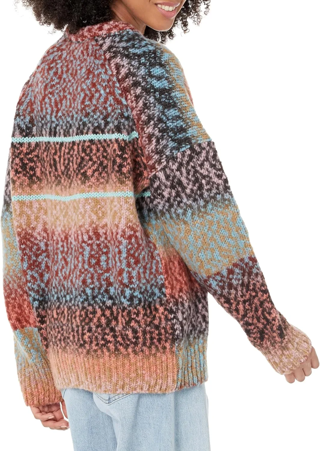 Этот эффектный свитер украшен полосами, окрашенными в стиле «космический краситель», по всей поверхности.