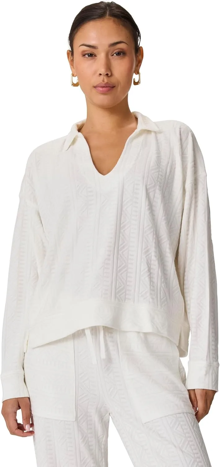 Великолепная женская поло с длинными рукавами из трикотажа, цвет «бумага».