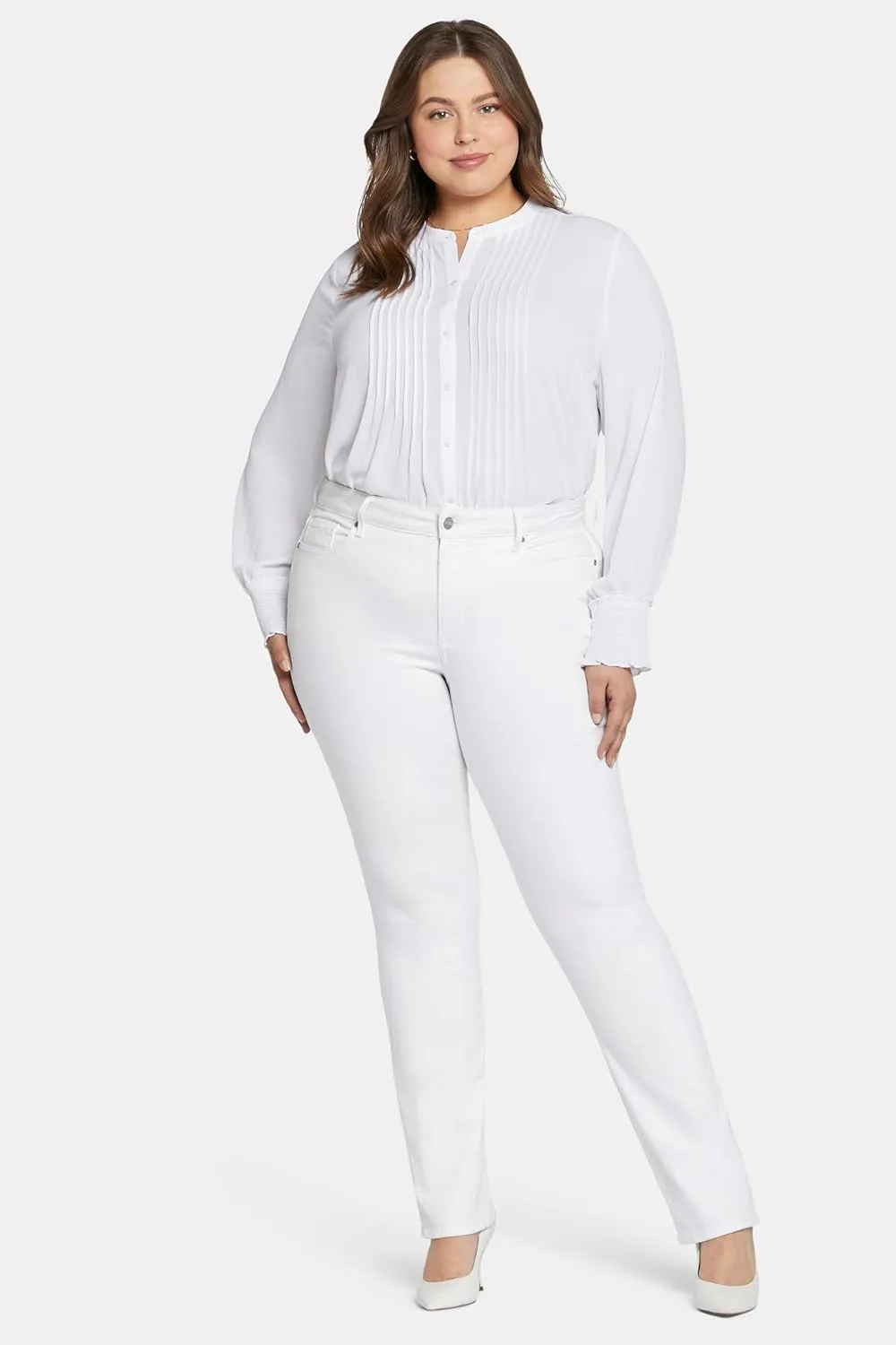 Этот классический крой — беспроигрышный вариант. Удобная, визуально удлиняющая фигуру конструкция прямых джинсов Marilyn от NYDJ из аутентичного денима отлично сочетается со всем, благодаря выгодно подчеркивающей талию и универсальному прямому крою от колена до низа. Наша технология Lift Tuck использует запатентованную вставку для коррекции фигуры с перекрестным дизайном, которая формирует и поддерживает ваши изгибы, обеспечивая всегда стройный силуэт.