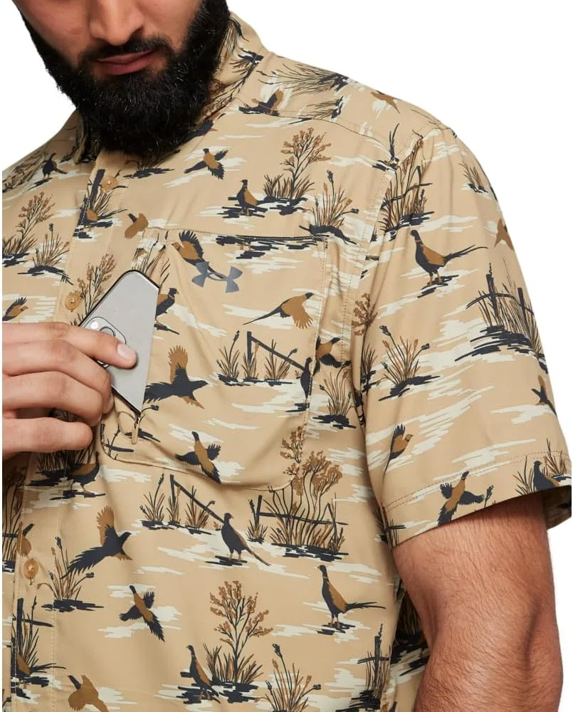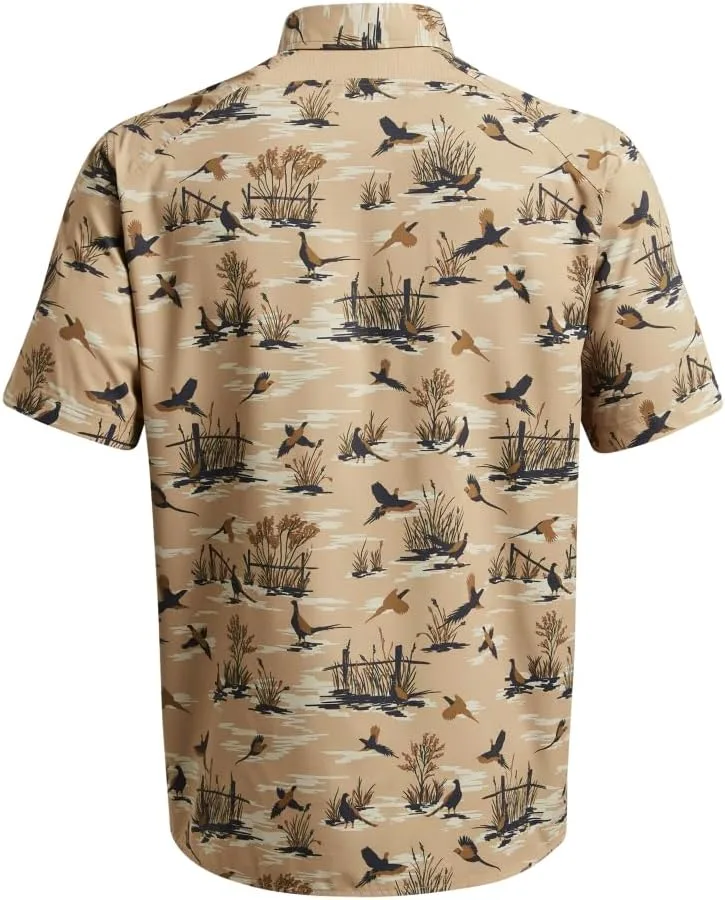 Легкая эластичная ткань прочная и комфортная. Материал отводит пот и очень быстро сохнет. Эластичные сетчатые вставки для дополнительной вентиляции. Материалы с грязеотталкивающими свойствами предотвращают впитывание грязи. Надежные нагрудные карманы и скрытый воротник на кнопках.