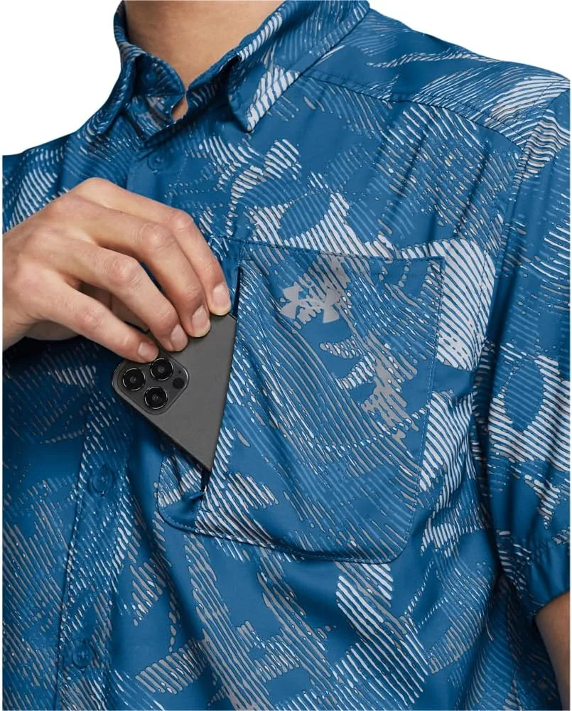Легкая эластичная ткань прочная и комфортная. Материал отводит пот и очень быстро сохнет. Эластичные сетчатые вставки для дополнительной вентиляции. Материалы с грязеотталкивающими свойствами предотвращают впитывание грязи. Надежные нагрудные карманы и скрытый воротник на кнопках.