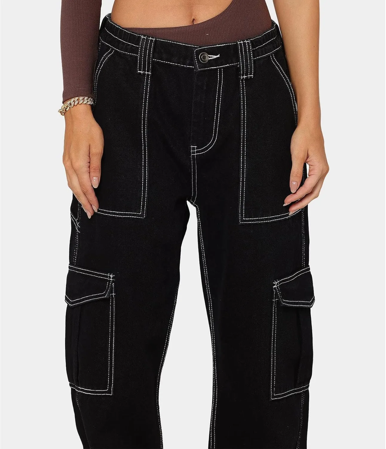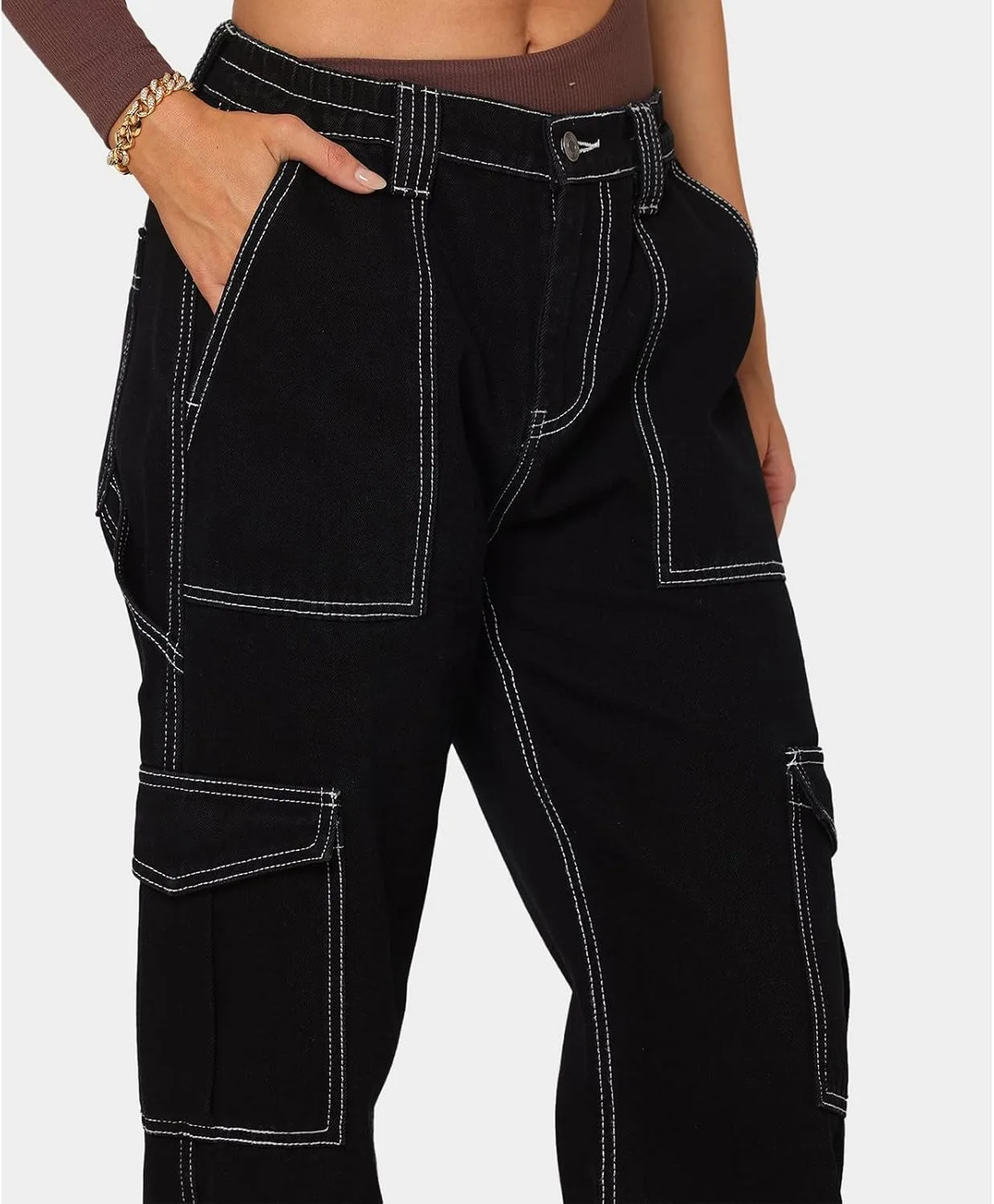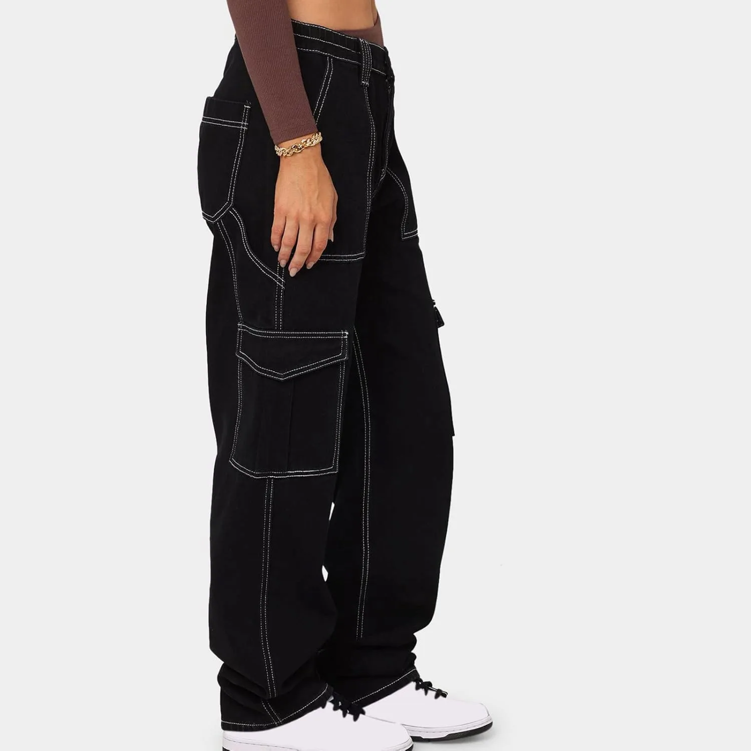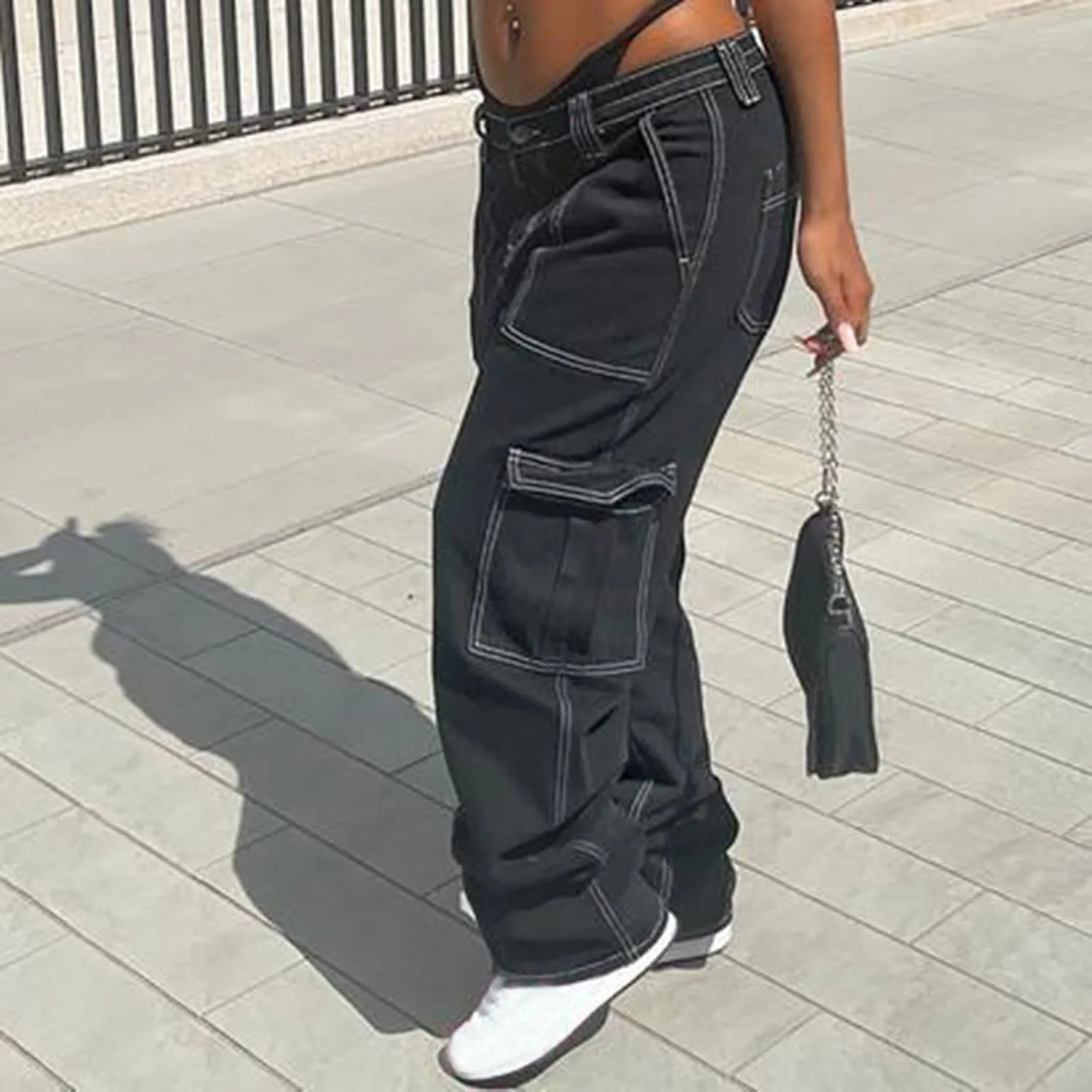 Женские и девичьи джинсы-карго свободного кроя, широкие прямые джинсы-карго в стиле Y2K, брюки-парашюты с карманами