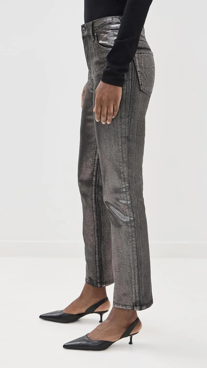 Размер соответствует стандартному. Тем, кто выбирает между размерами, следует выбрать больший размер. Высокая посадка и укороченные прямые штанины. Эластичный деним имеет покрытие и со временем растянется. Материал: Джинсовая ткань средней плотности с эластичным покрытием. Металлическая отделка Высота посадки: 9,75 дюйма / 25 см, Длина внутреннего шва: 28,25 дюйма / 72 см, Ширина штанины внизу: 14,25 дюйма / 36 см 5-карманный дизайн