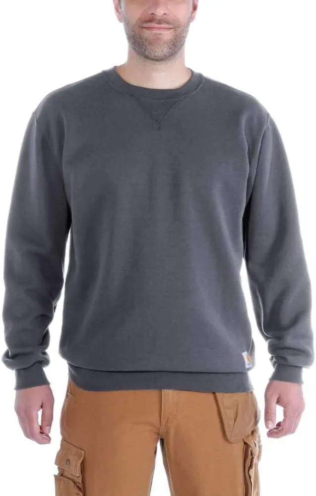 Толстовка Carhartt средней плотности с круглым вырезом изготовлена из смеси флиса и полиэстера плотностью 10,5 унций (примерно 300 грамм). Для защиты от холода и сохранения тепла она имеет эластичные манжеты и пояс из спандекса в рубчик. Серый меланж: 70% хлопок/30% полиэстер.