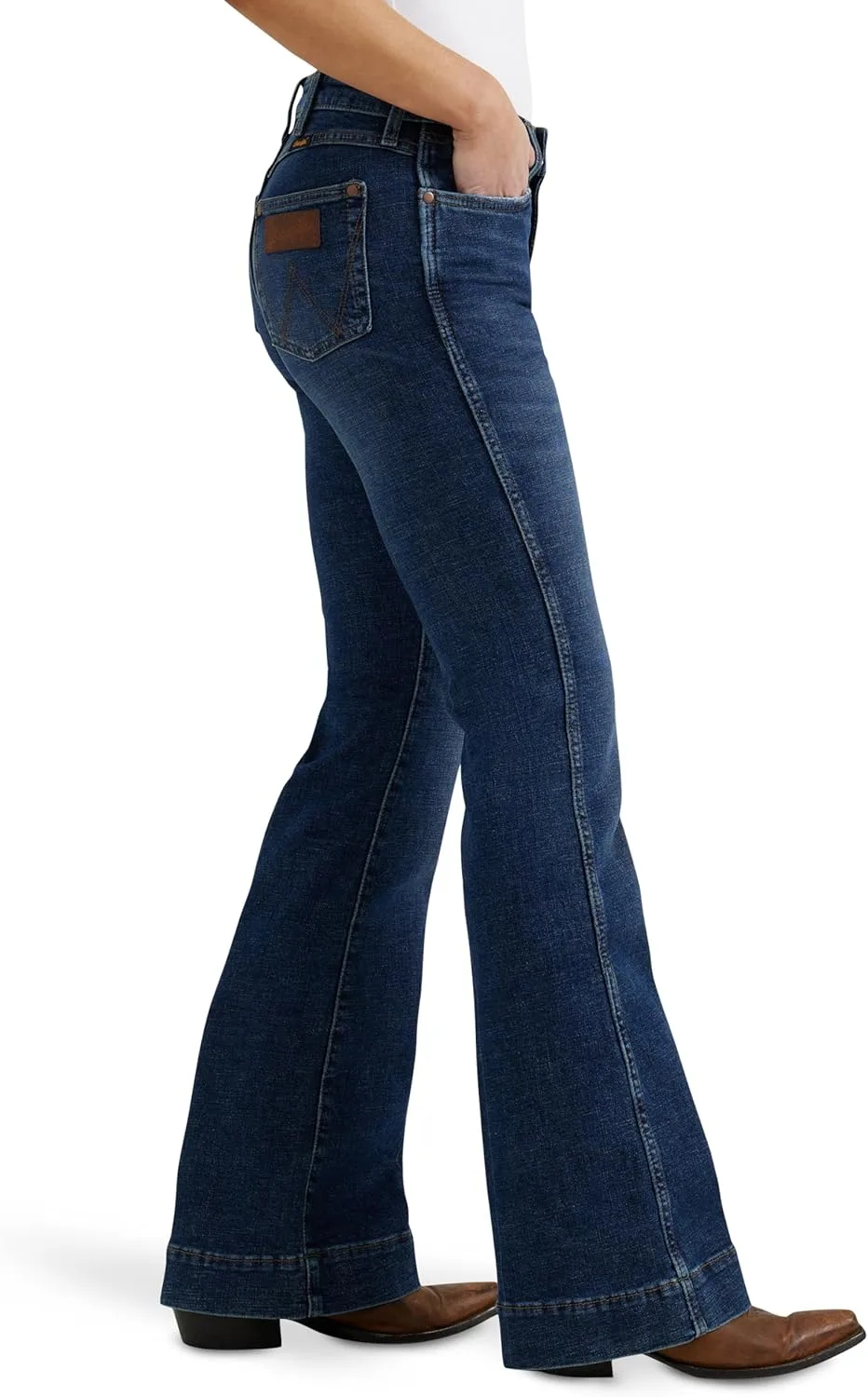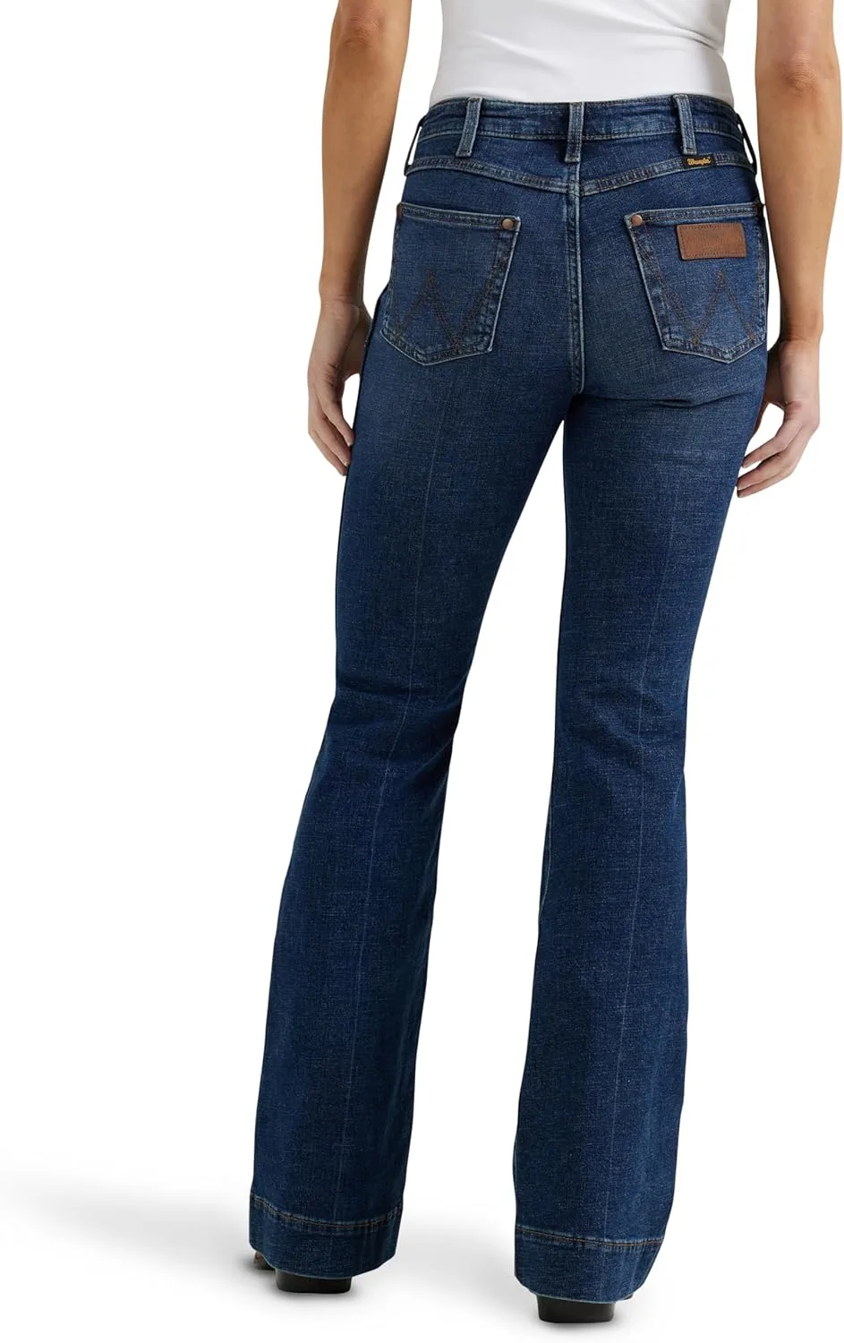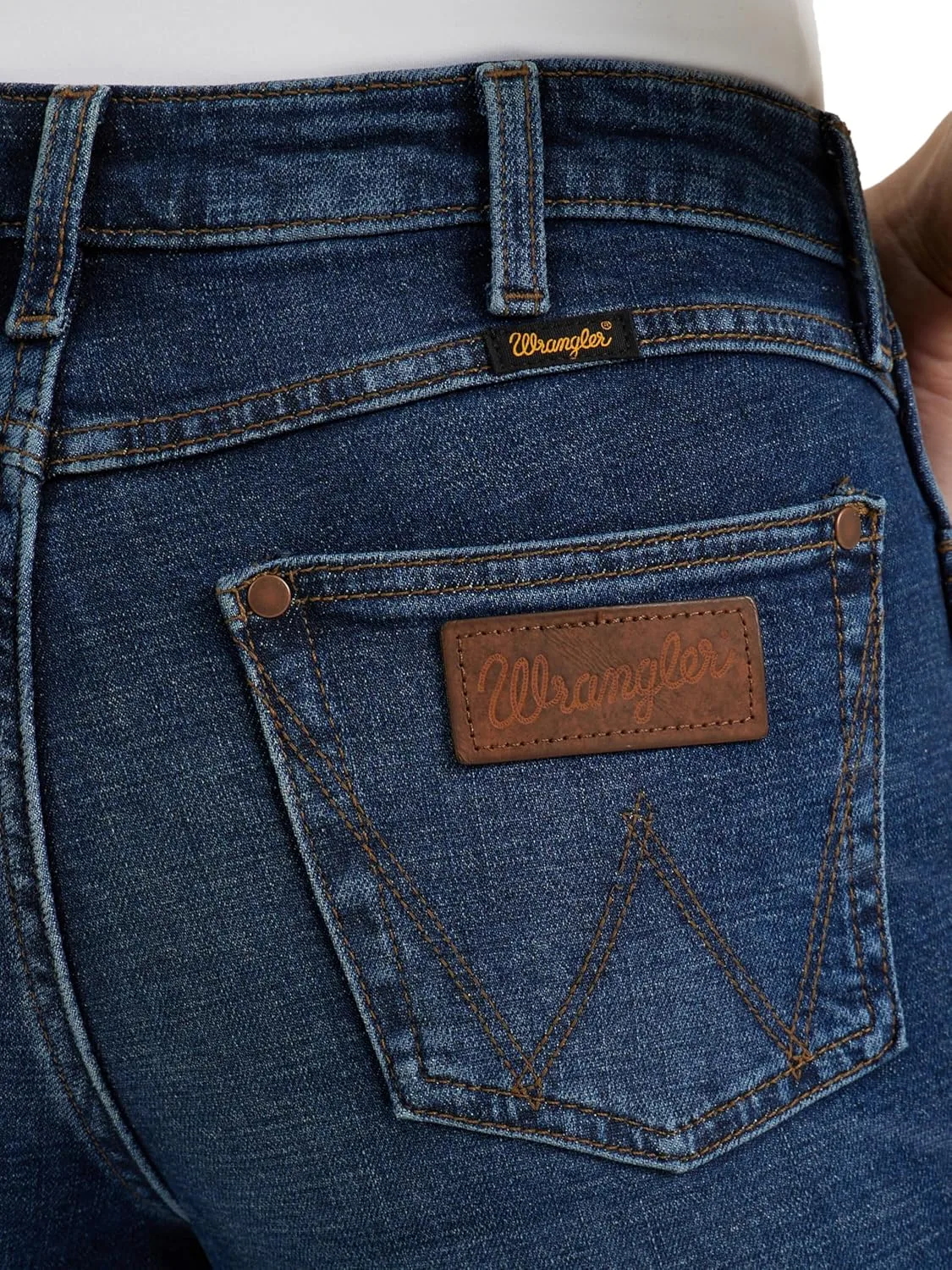 КУЛЬТОВАЯ ОТДЕЛКА. Эти джинсы-брюки с высокой талией украшены фирменной строчкой Wrangler в виде буквы «W», кожаной нашивкой Wrangler на заднем кармане и заклепкой 1947 года на переднем кармане. Сохраните этот непринужденный классический стиль с ноткой ретро.