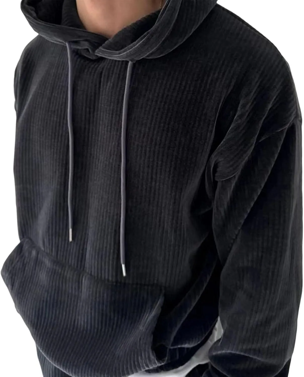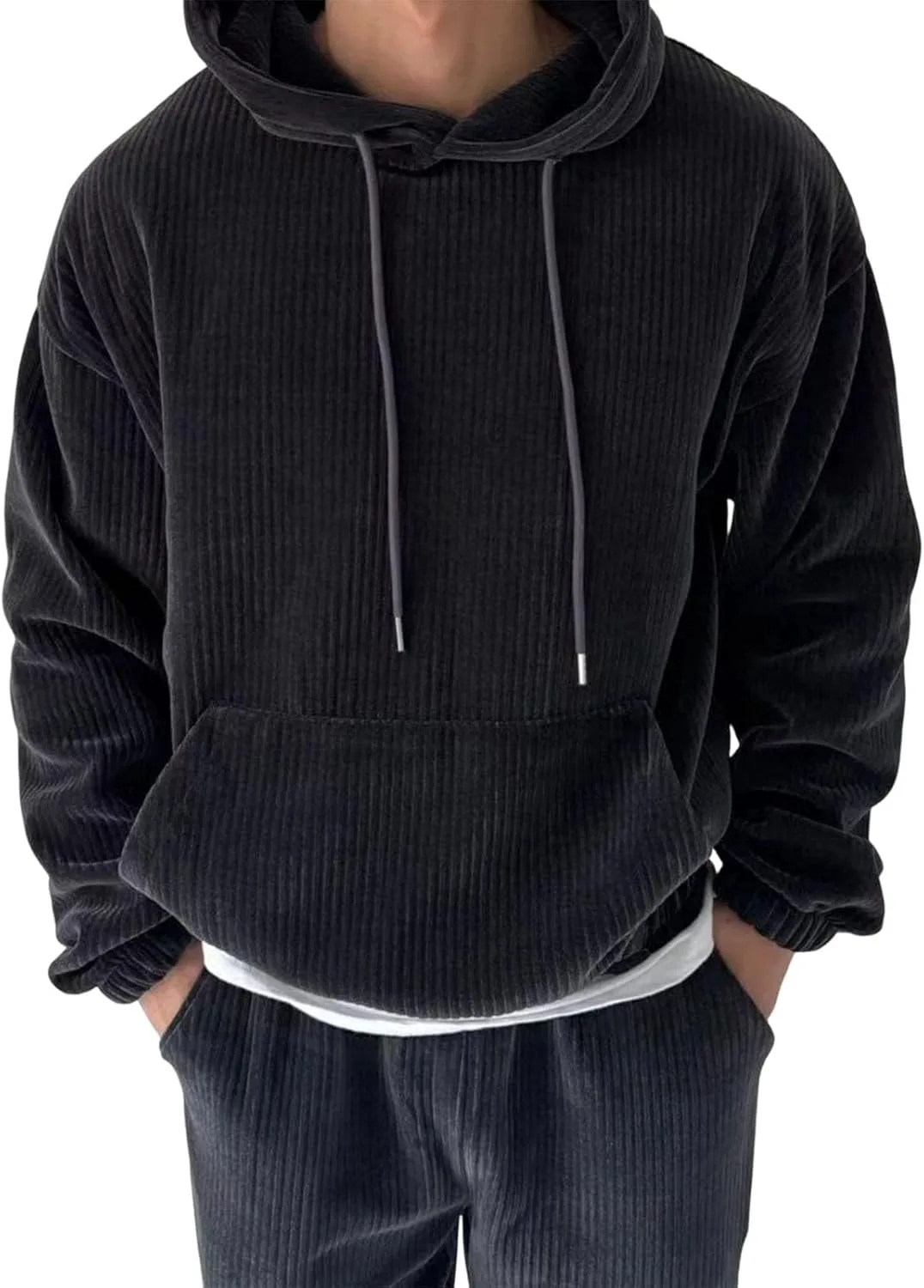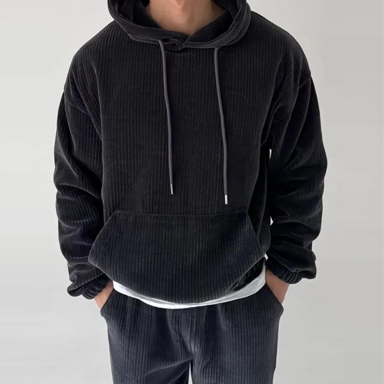 Мужской пуловер с капюшоном | Solid Color Corduroy, с карманом