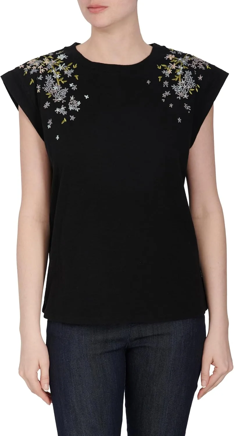 Cinq à Sept Women's Lilac Vine Emb Bella Tee