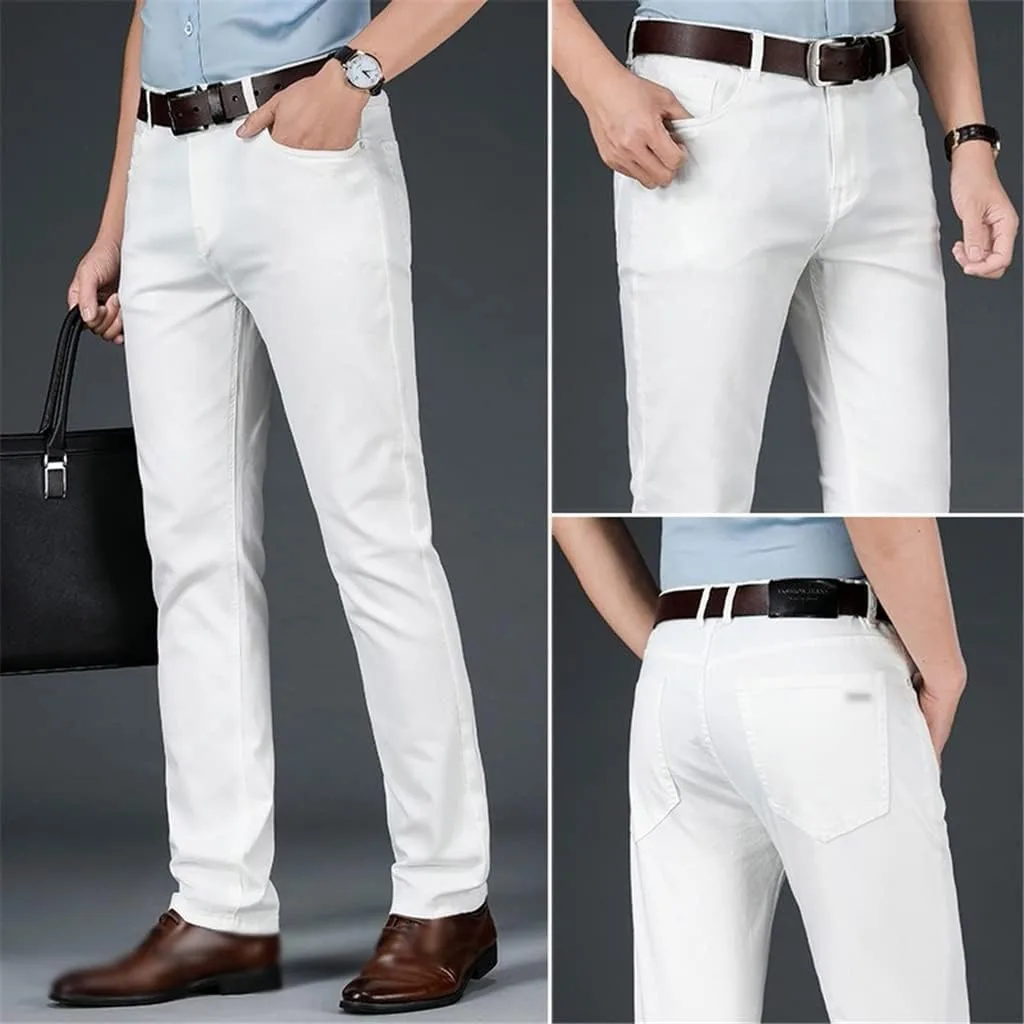 Белые джинсы, классического прямого кроя, подходят для любого времени года. Классический джинсовый материал, удобный и комфортный. Процесс трехмерного пошива в форме буквы «S» обеспечивает большую герметичность изделия. Подходит для всех четырех сезонов — весны, осени и зимы, это незаменимое платье в гардеробе. Оно универсально и хорошо сочетается с любым верхом. Это отличный подарок для её парня и мужа.