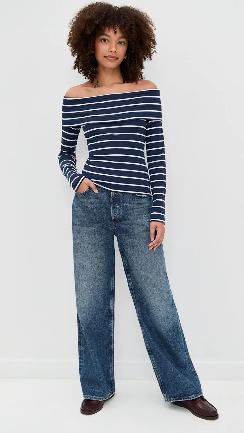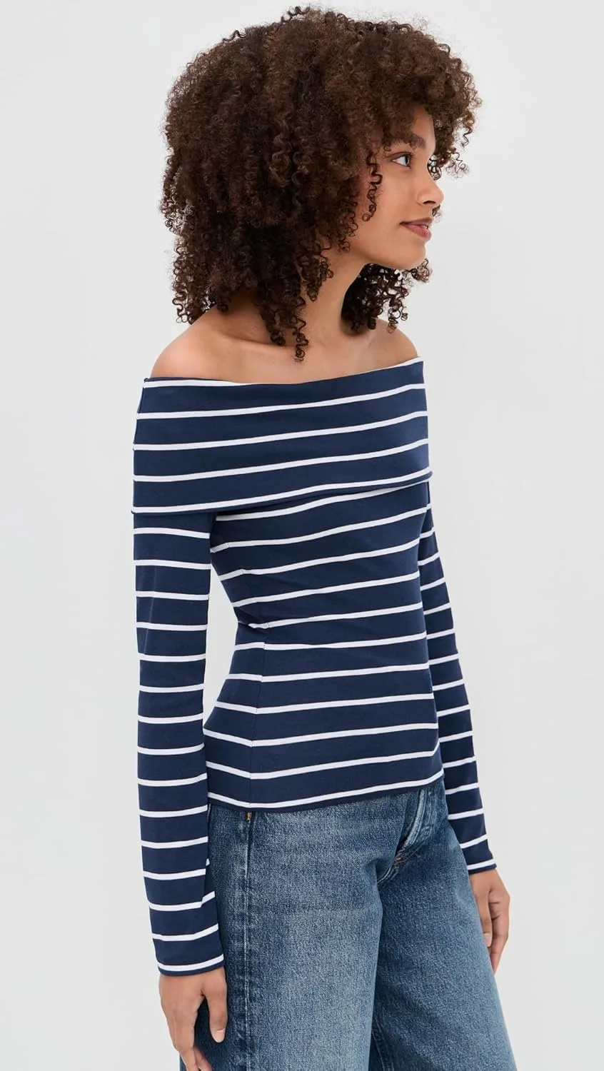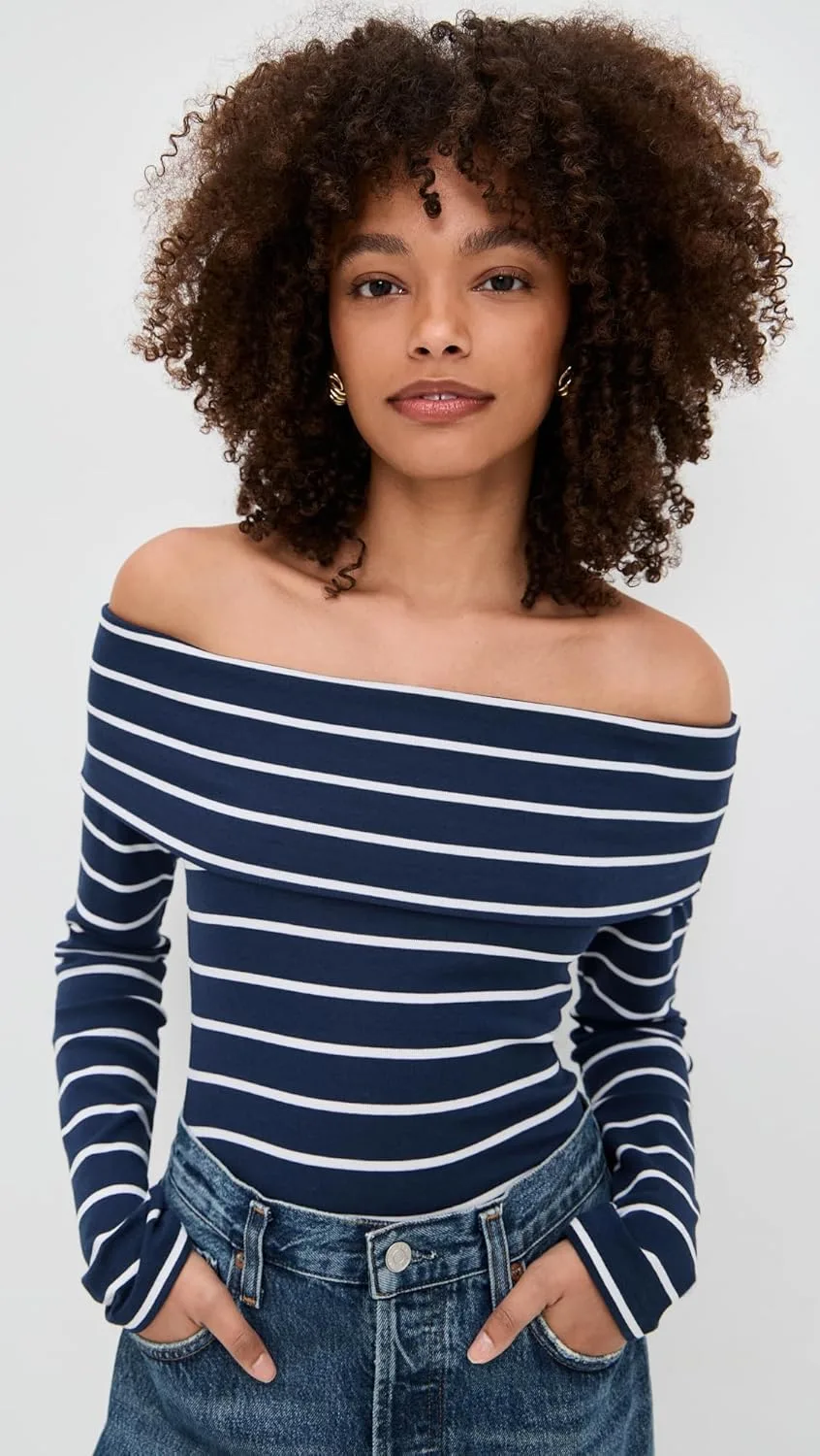 Название модели: Josie Топ с открытыми плечами и длинными рукавами в полоску