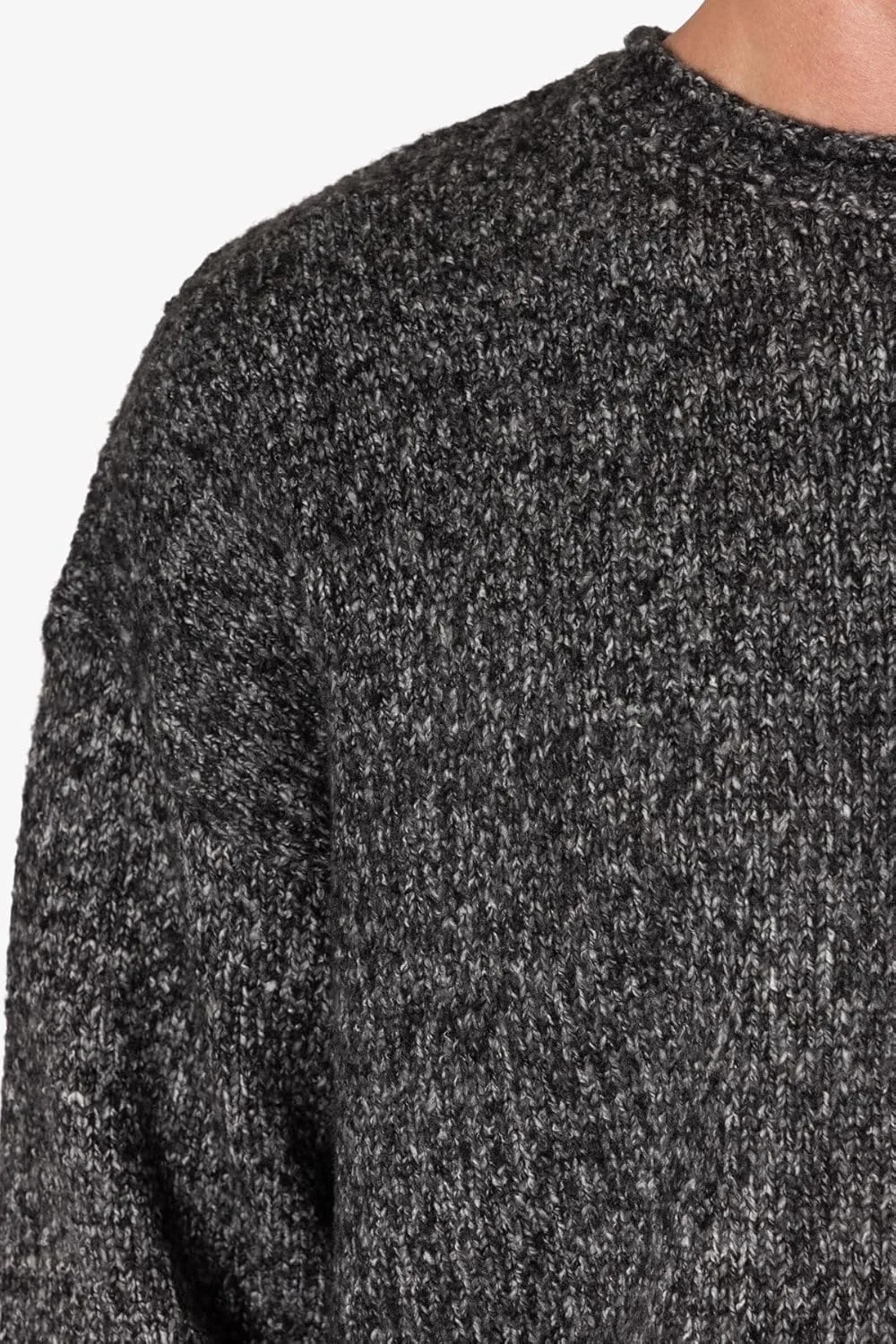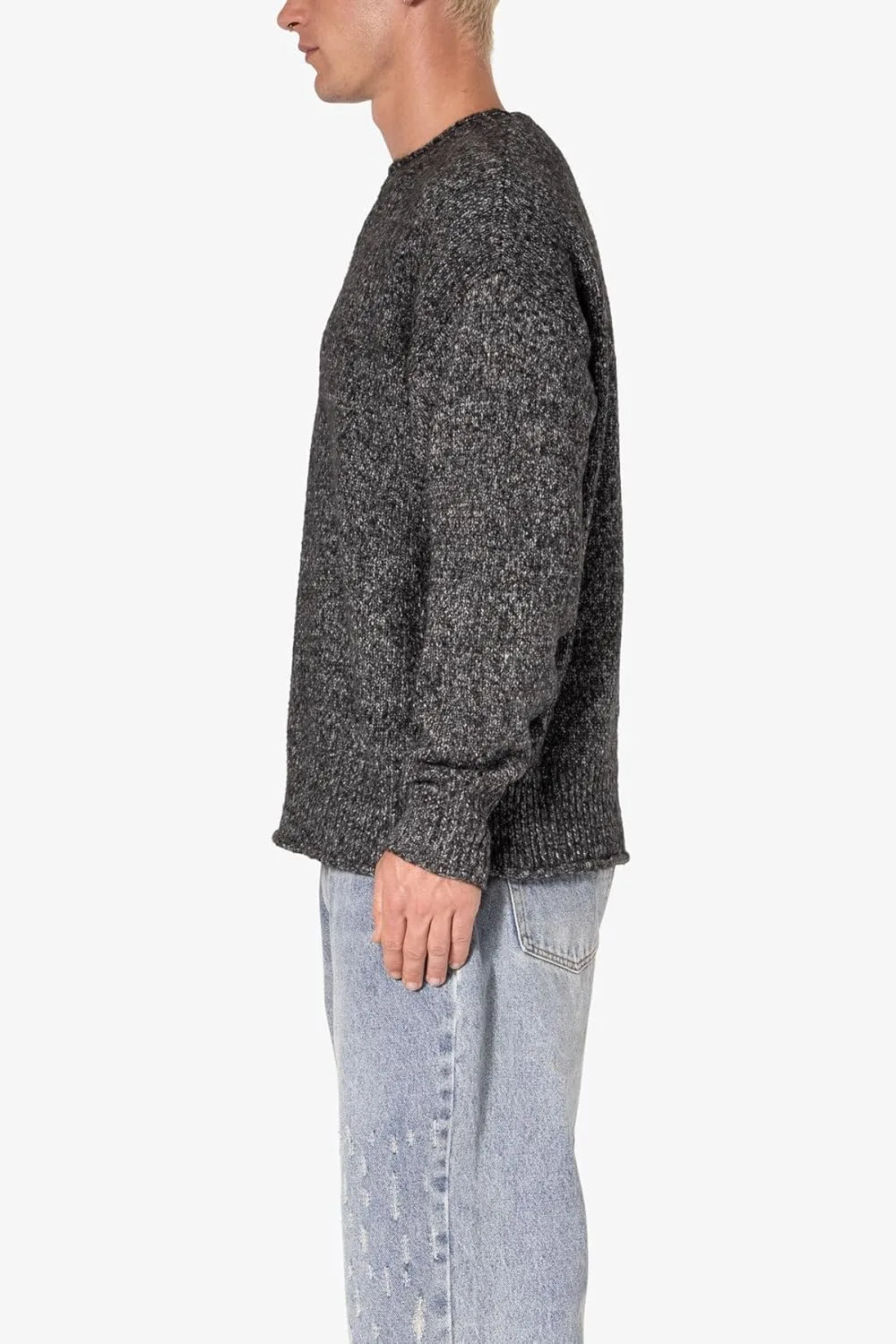 Свитер Grain Sweater — это свитер, связанный на заказ из хлопка, с ребристым воротником, поясом и манжетами, отделанный меланжевой текстурой.