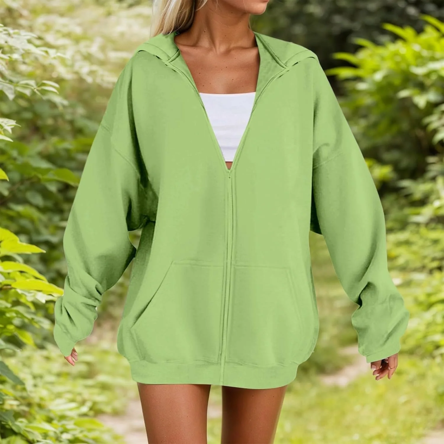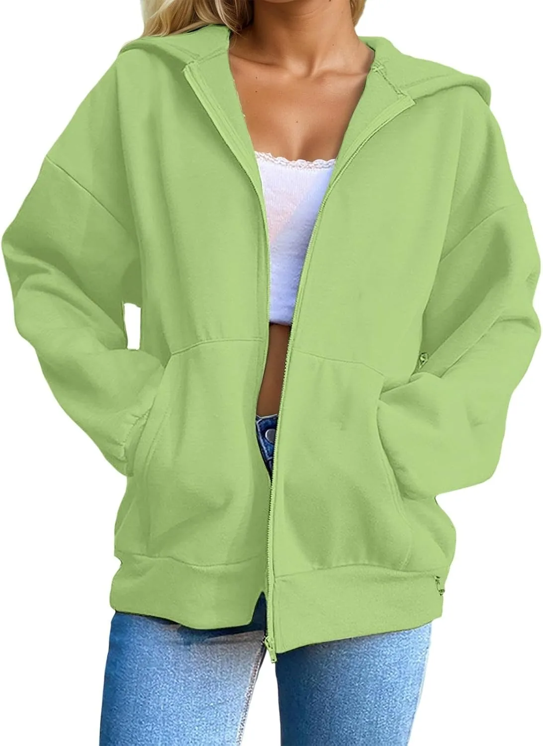 МОДНЫЙ КРОЙ В СТИЛЕ Y2K: Эта женская толстовка свободного кроя с застежкой-молнией по всей длине и регулируемым капюшоном на шнурке выглядит стильно и модно. Спущенные плечи и ребристые манжеты создают стильный образ в духе преппи, идеально подходящий как для девочек-подростков, так и для мам.