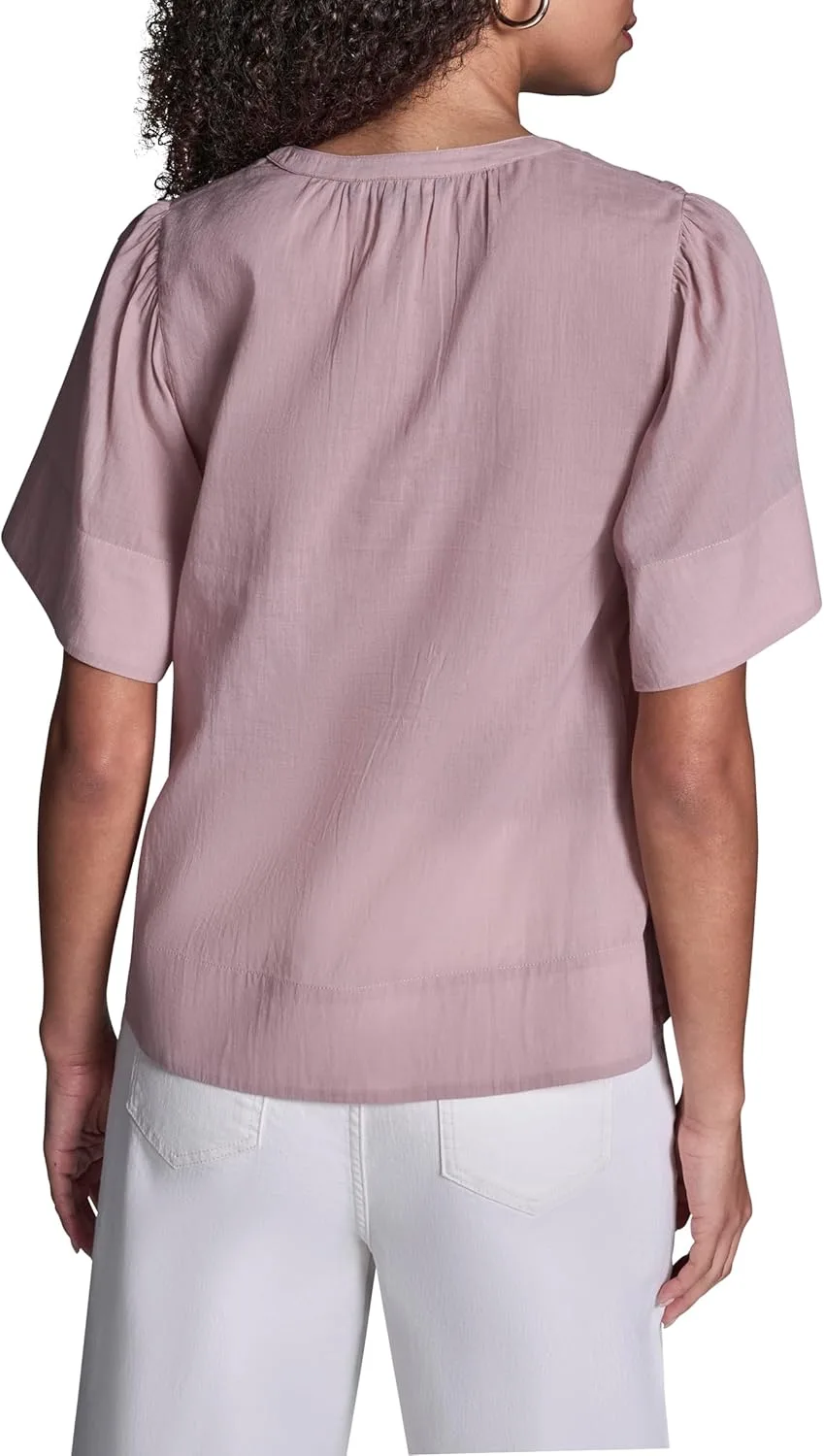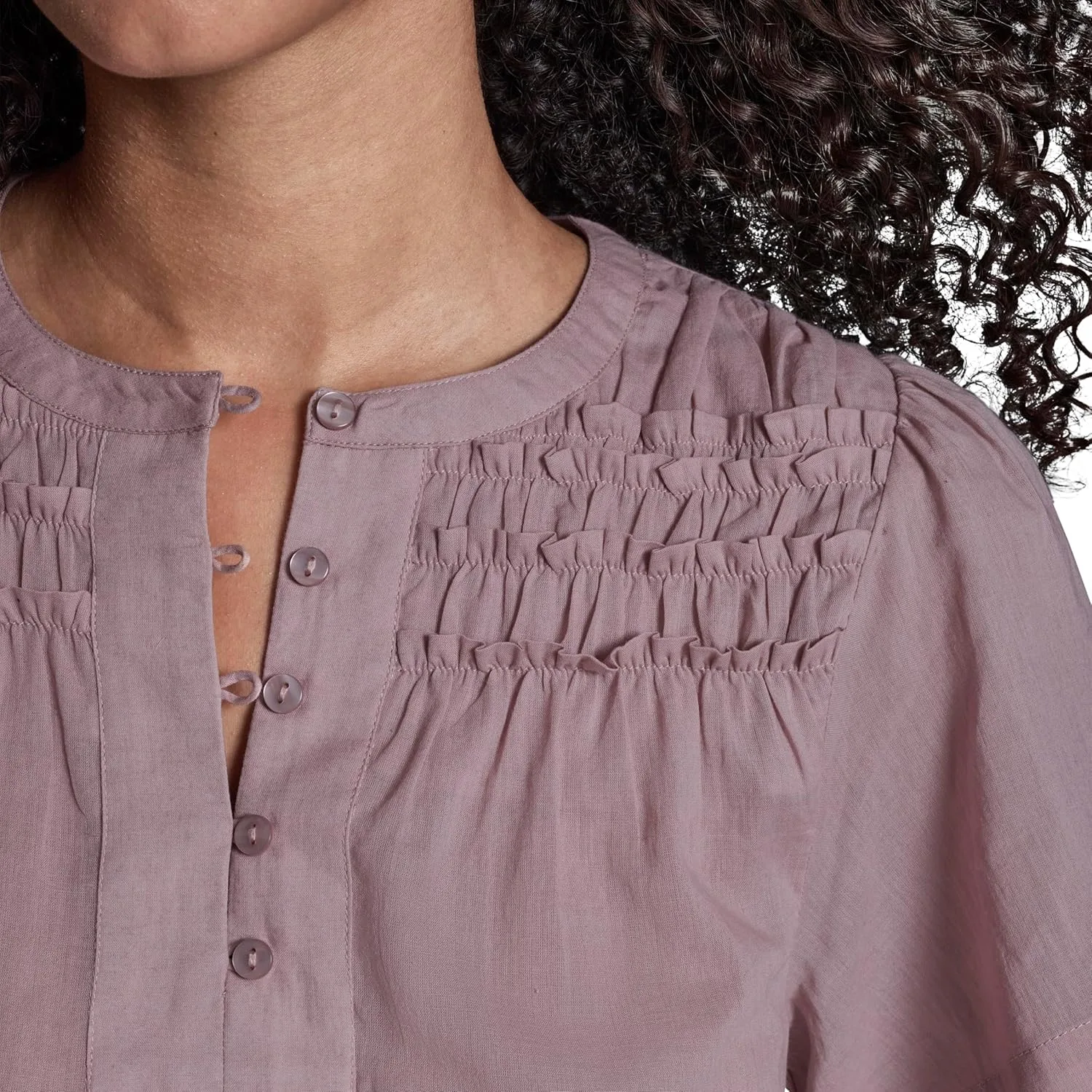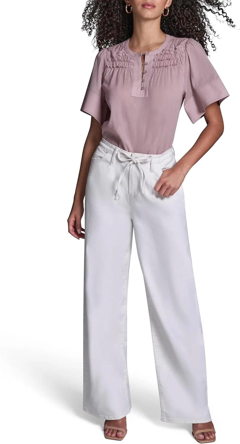 Сшито с любовью: блузка с короткими рукавами, ажурной отделкой и сборками.