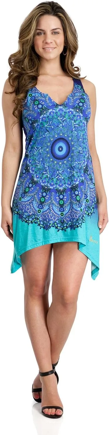 Длинная футболка с неровным краем и абстрактным принтом, украшенным множеством аппликаций из стразов, завершающих дизайн.