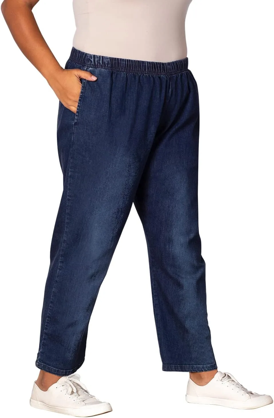 Эти джинсы премиум-класса свободного кроя из хлопковой смеси больших размеров сочетают в себе комфорт, удобство и мягкость, эластичность, которые вы оцените каждый раз, когда будете их носить. Изготовленные из высококачественной смеси хлопка, тенсела лиоцелла и лайкры спандекса, они обеспечивают воздухопроницаемость и оптимальную эластичность для комфортного повседневного движения. Свободный крой создает непринужденный, свободный силуэт, а эластичный пояс делает их простыми и удобными в ношении. Боковые карманы добавляют практичности, а длина внутреннего шва 76 см обеспечивает универсальную длину, которая хорошо сочетается с кроссовками, сандалиями или балетками. Независимо от того, гуляете вы или отдыхаете, эти джинсы предлагают теплое сочетание комфорта премиум-класса и повседневного стиля.