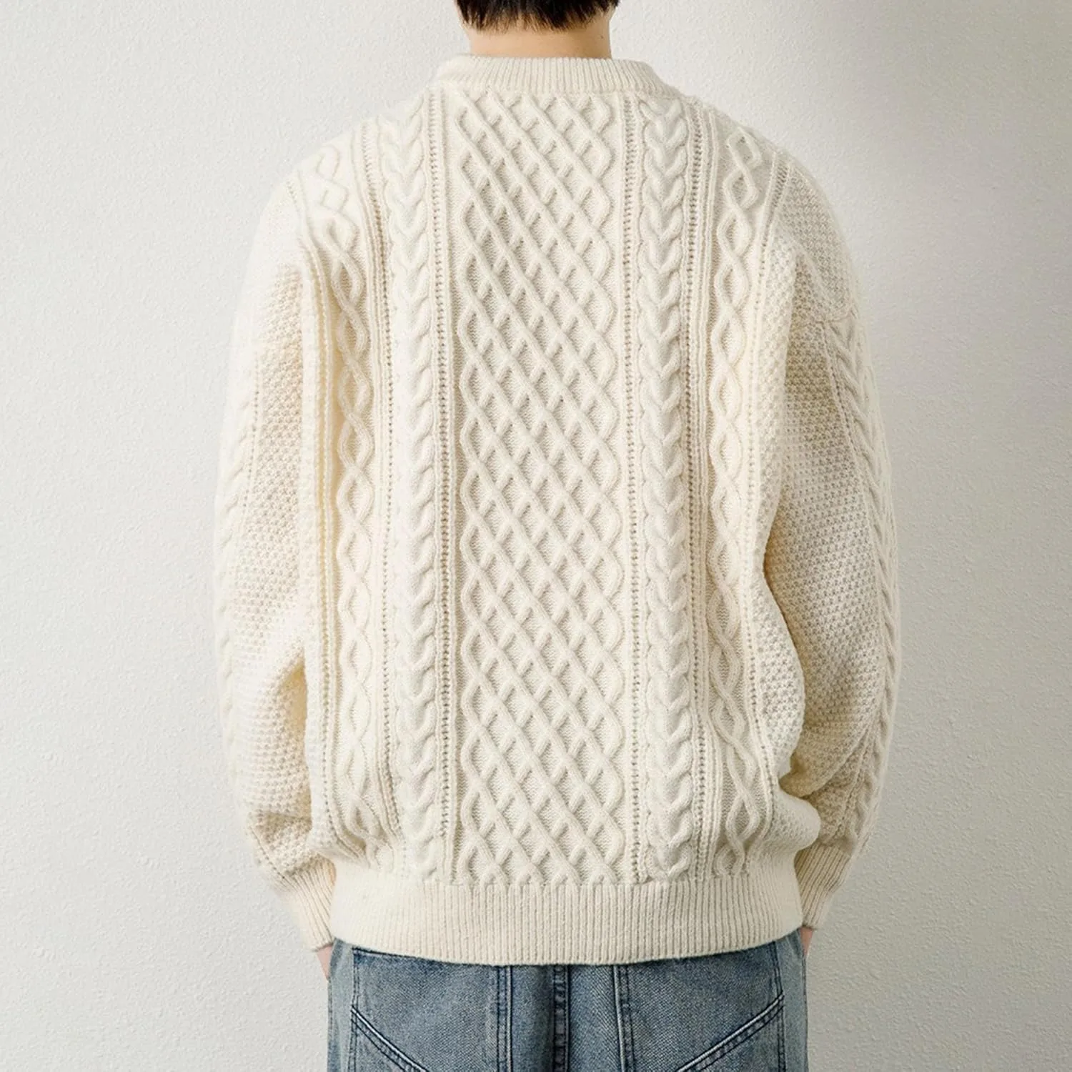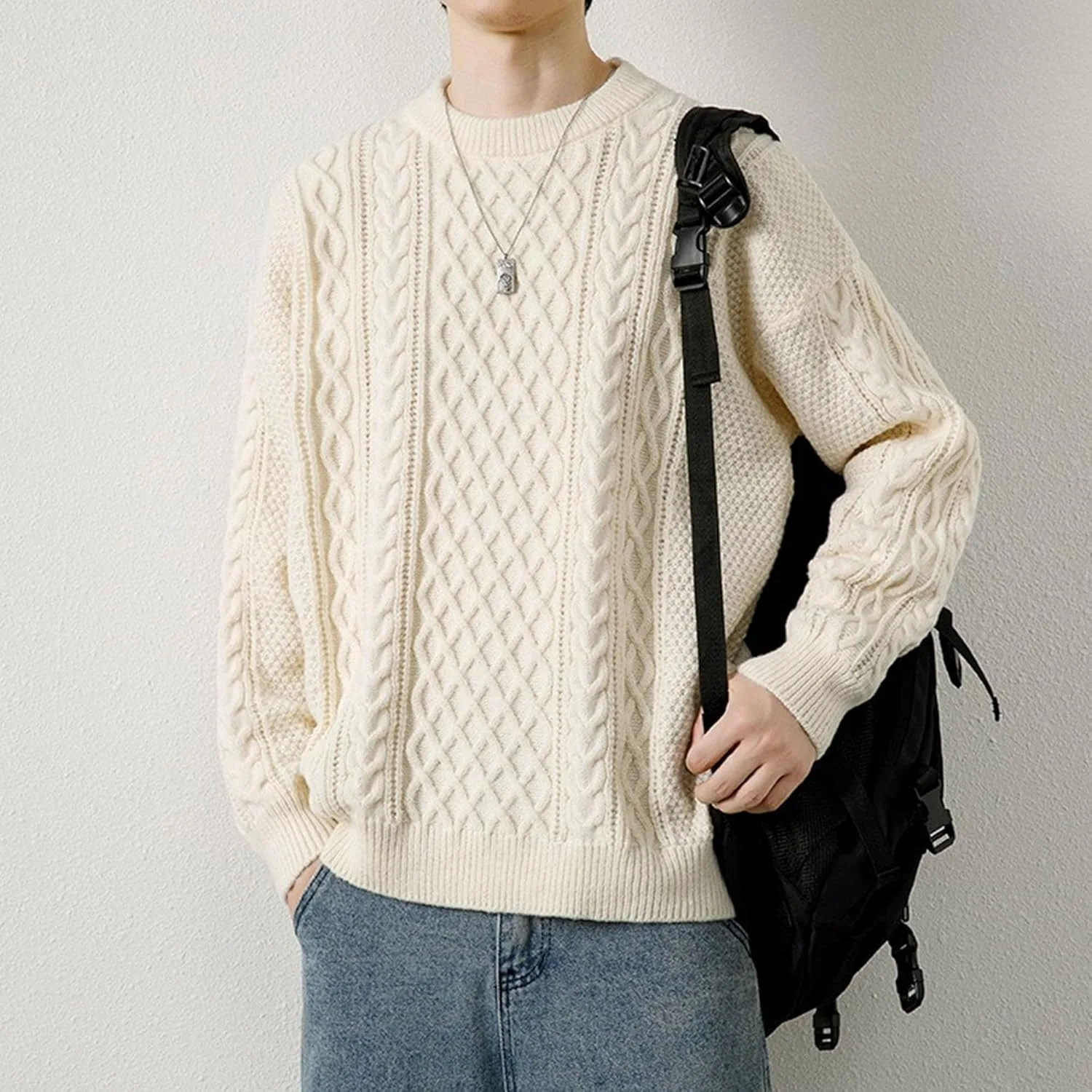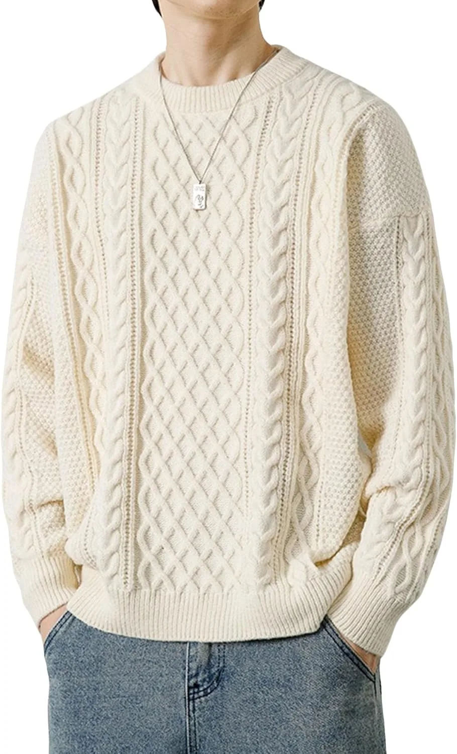 Классический дизайн с круглым вырезом: Мужской свитер с круглым вырезом имеет классический дизайн с длинными рукавами и отложным воротником, идеально сочетая в себе повседневный и элегантный стиль. Ребристые манжеты и нижний край обеспечивают комфорт, согревая вас зимой и придавая стильный вид.