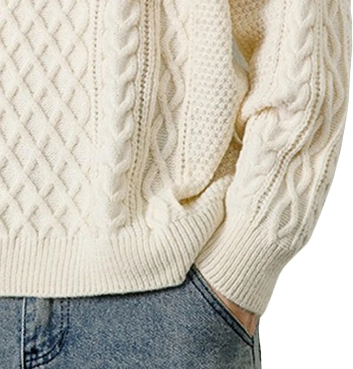 Мягкая ткань: Этот мужской свитер изготовлен из легкой фактурной трикотажной ткани, он толстый и теплый, мягкий и удобный, эффективно предотвращает образование катышков. Будь то холодная зима или прохладный осенний день, этот свитер обеспечит исключительное тепло, позволяя вам чувствовать себя уютно весь день.