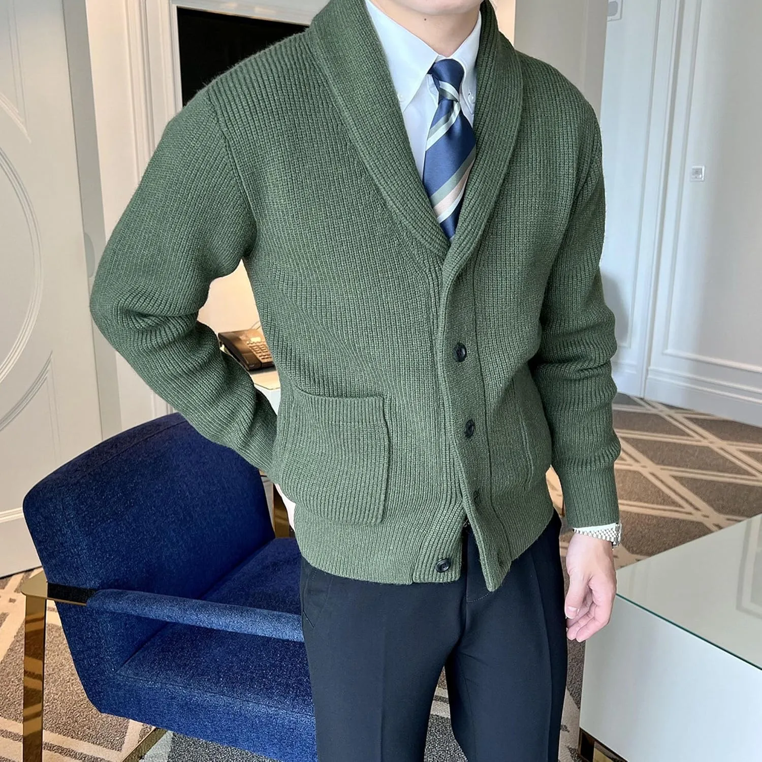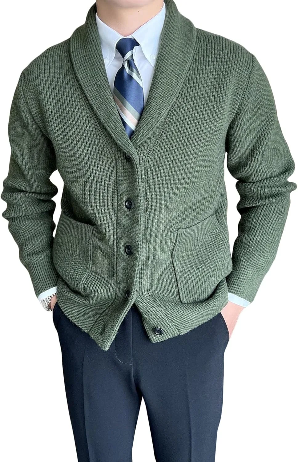 Кардиган с воротником-шалью: Этот стильный кардиган с воротником-шалью можно сочетать с джинсами или современными брюками, чтобы выглядеть круто и потрясающе. Мужские вязаные кардиганы с текстурой и пуговицами, мужские ребристые вязаные свитера с воротником-шалью и пуговицами, мужские вязаные куртки с открытым передом, мужские кардиганы с пуговицами и карманами.