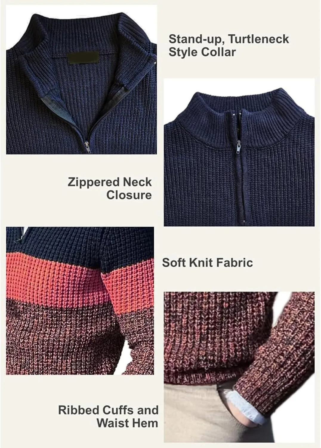 Мужской свитер с четвертью молнии в полоску