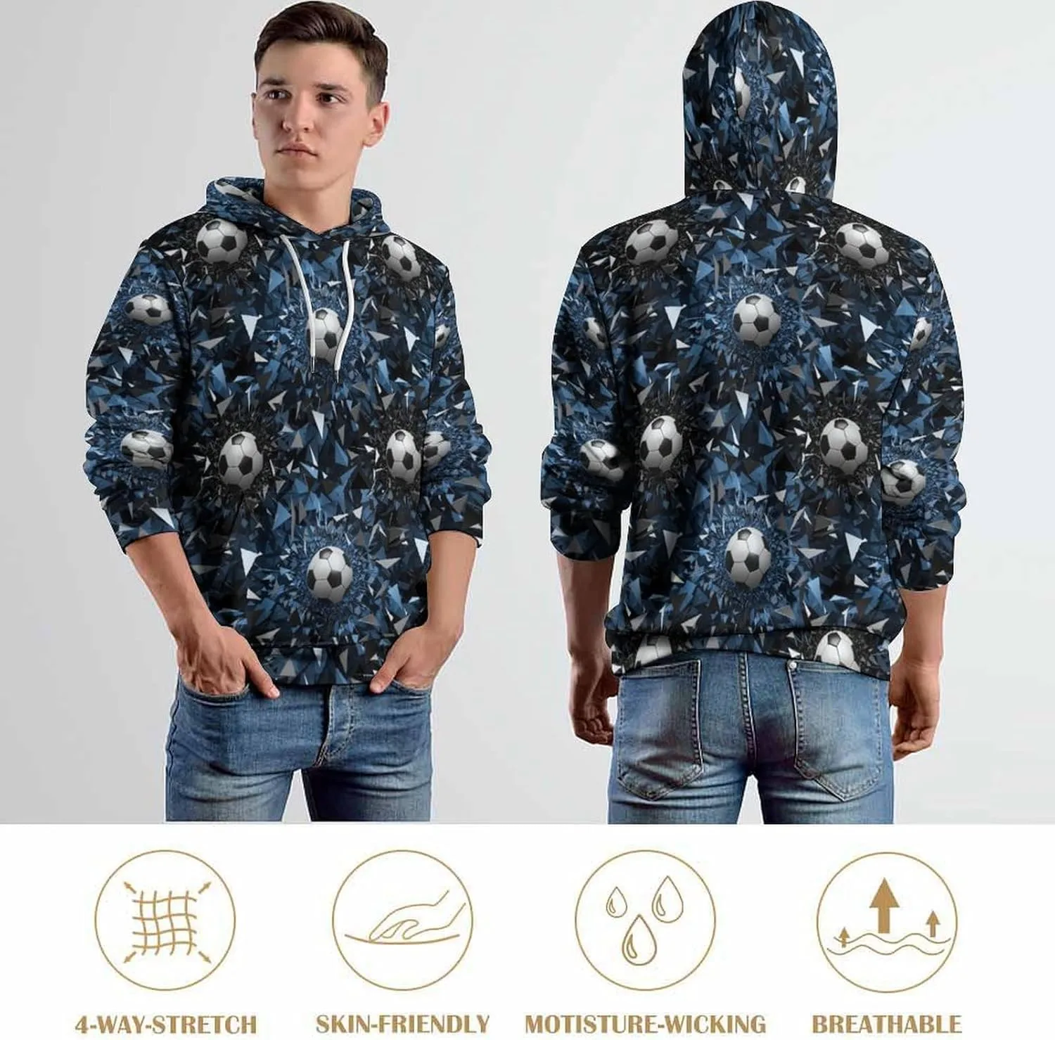 Эластичная ткань: Эта толстовка для взрослых изготовлена ​​из 95% полиэстера и 5% спандекса, что обеспечивает идеальную мягкость и эластичность. Прочная полиэстеровая ткань устойчива к усадке, образованию катышков и деформации, сохраняя свой превосходный внешний вид даже при длительном ношении.