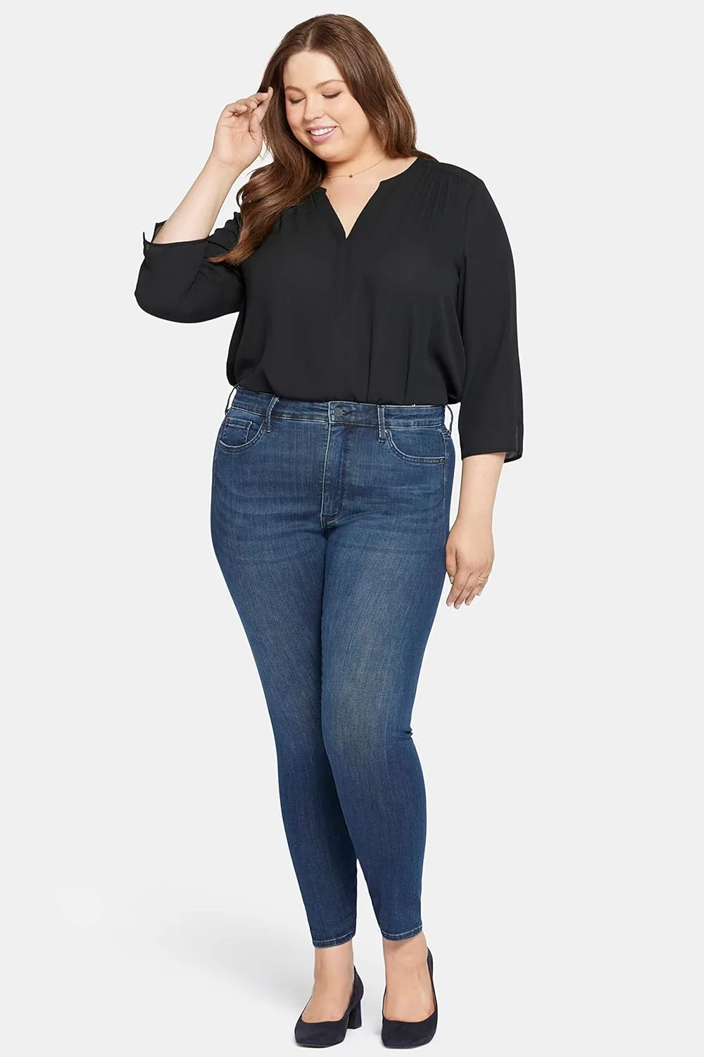 Представляем женские джинсы, сочетающие в себе комфорт и универсальность в одном элегантном и стройнящем варианте. Джинсы Ami Skinny Jeans от NYDJ из эластичного денима Sure Stretch Denim подчеркивают каждую деталь вашей фигуры, создавая желаемый силуэт: стройные ноги, подтянутый живот и приподнятые изгибы. Наша уникальная технология Lift Tuck Technology обеспечивает эффект стройности спереди благодаря запатентованной узким вставкам с перекрестным дизайном. Классические пять карманов, застежка на молнию и пуговицу.