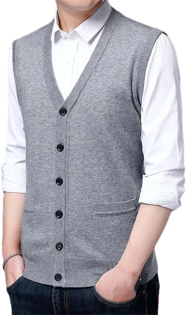 Особенности: Этот мужской свитер-майка или вязаный пуловер отличается стильным V-образным вырезом, отсутствием рукавов и ребристой отделкой. Он легко сочетается как с классическими, так и с повседневными рубашками, идеально подходит как для официальной работы, так и для повседневной носки.